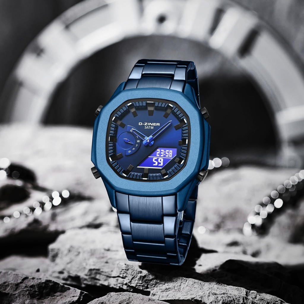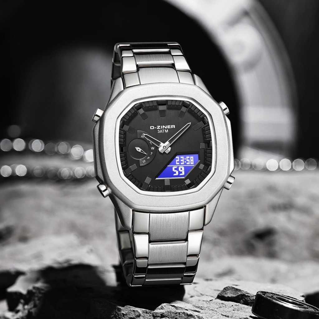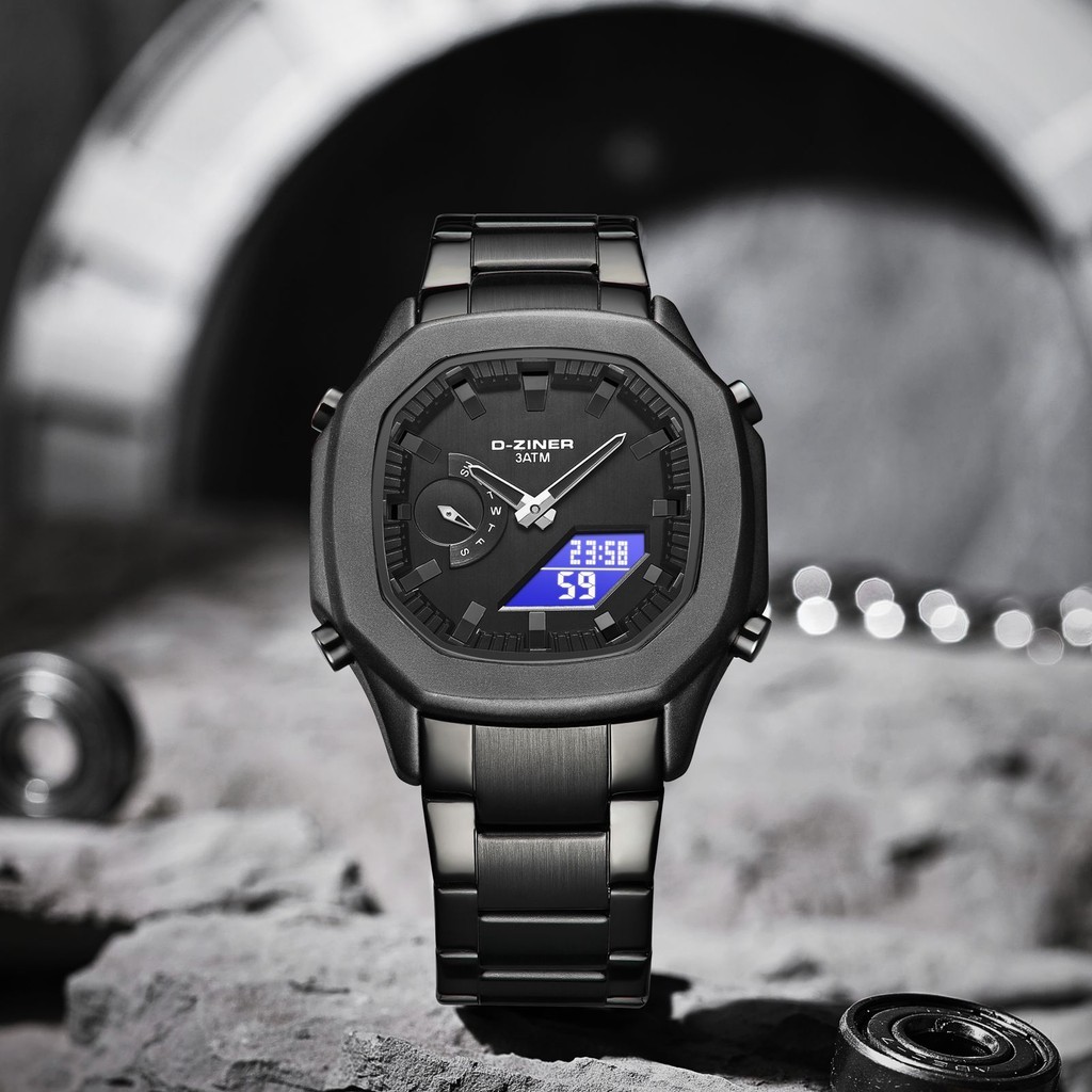 [Mall] DZINER JAM TANGAN PRIA 8341 RANTAI STAINLESS STEEL DOUBLE TIME WATER RESISTANT 3 ATM