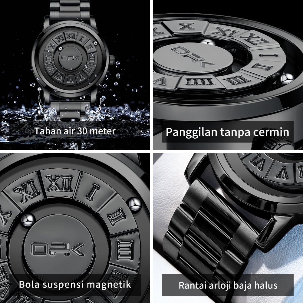 [Mall] OPK JAM TANGAN PRIA ANTI AIR DESAIN UNIK ORIGINAL STAINLESS STEEL HITAM MAN WATCH MODEL 8181