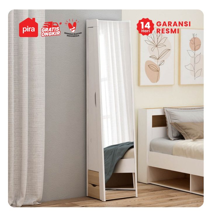 PIRA-SADA DS40 CERMIN BERDIRI FULL BODYdengan Laci dan Rak Jilbab/Rak Pakaian