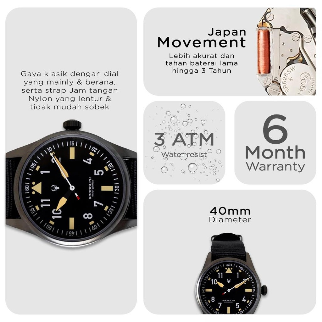 [Mall] ROODOLPH WATCH - ROADPILOT BLACK | JAM TANGAN ANALOG PRIA | MEN WATCH