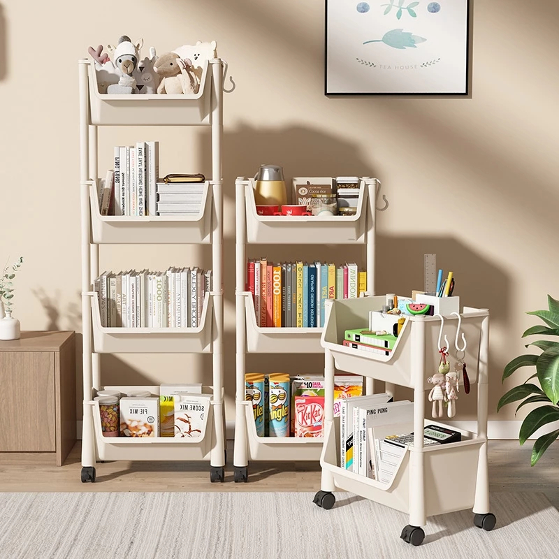 3/4 Tier Rak Susun Penyimpanan Rak Buku Portable Lemari Buku Plastik Dengan Roda Toy Storage Desk