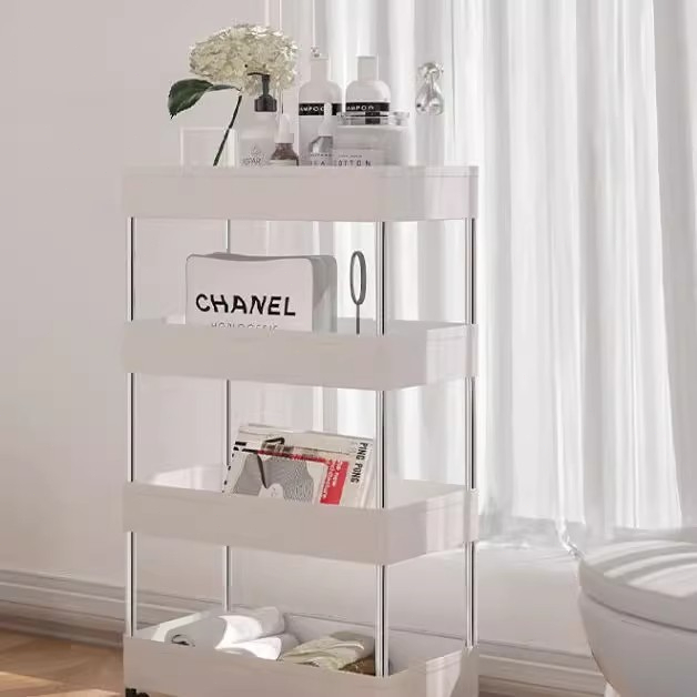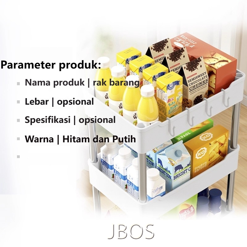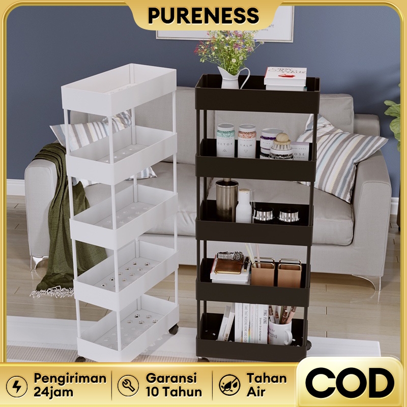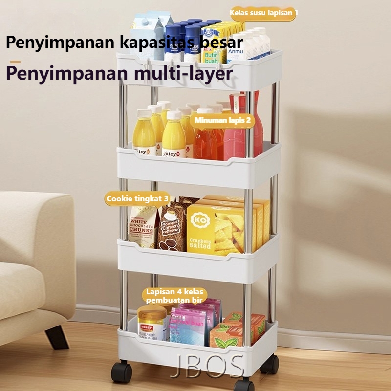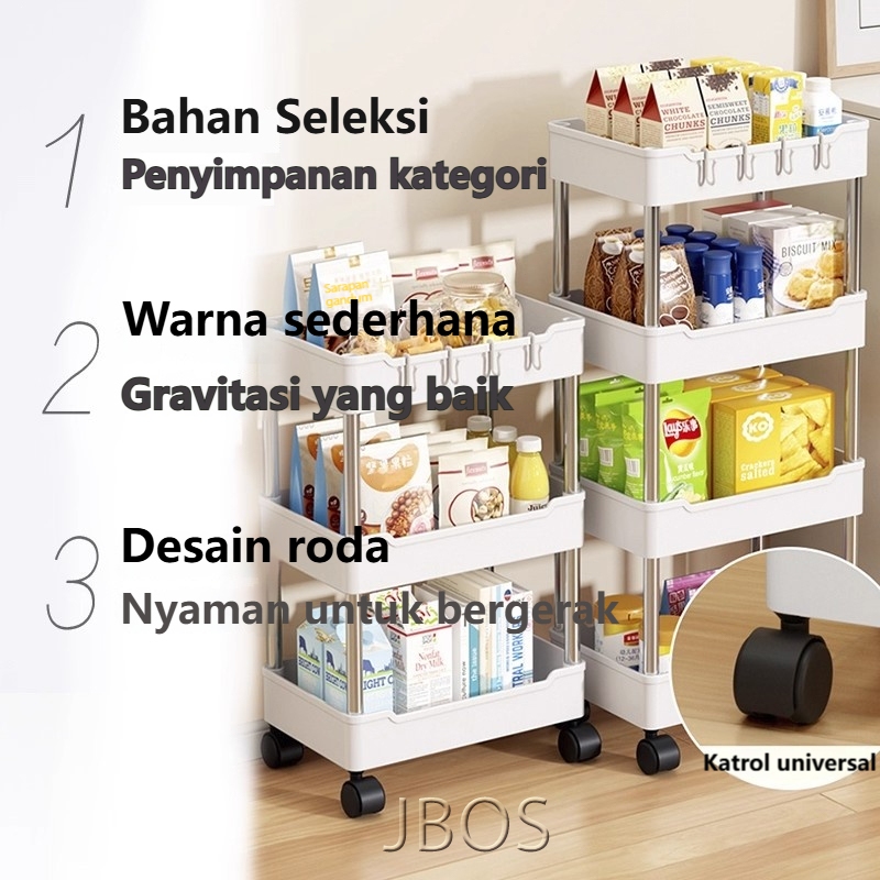 Rak Troli Susun Rak Susun Serbaguna 3/4/5 Tingkat Bahan Plastik Dengan Roda Rak Dapur Square Rack Peyimpanan Snack Serba