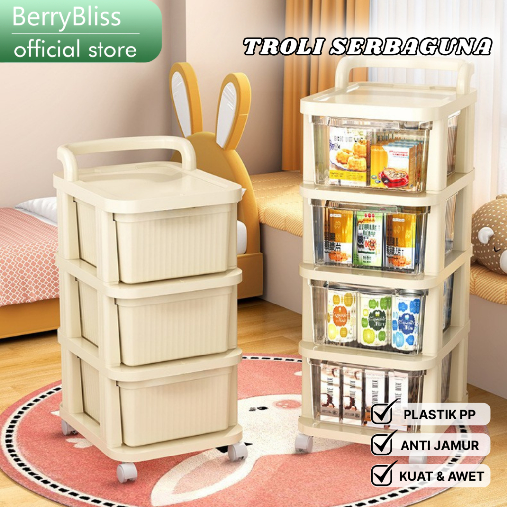 Berrybliss - Lemari Troli Serbaguna - Rak Troli Susun Serbaguna dengan Roda untuk Penyimpanan Dapur Makanan Skincare