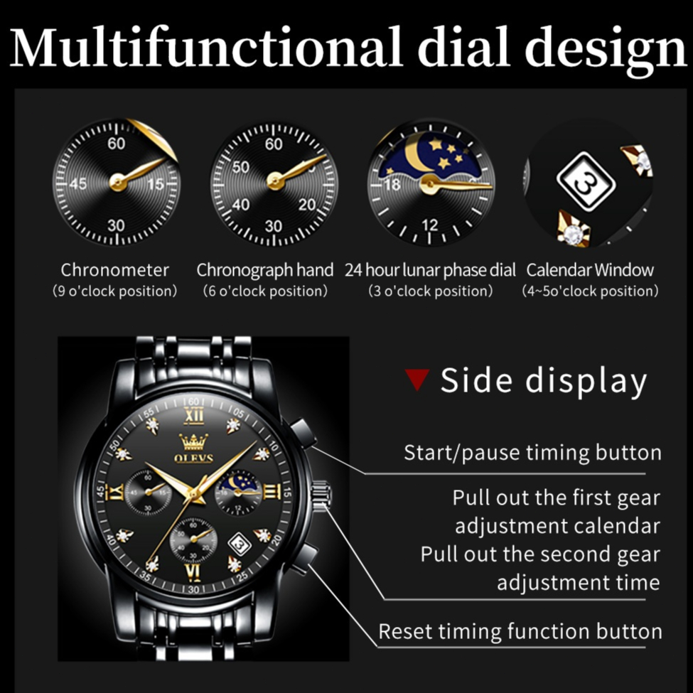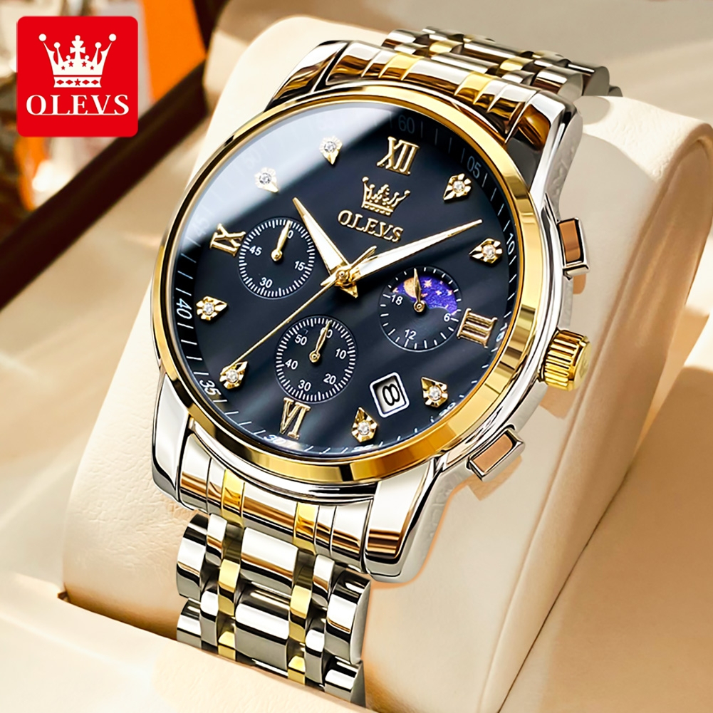 [Mall] OLEVS JAM TANGAN PRIA ORIGINAL ANTI AIR TAHAN LUMINOUS FASHION ANALOG CHRONOGRAPH STAINLESS STEEL HITAM BIRU PUTIH WATCH MEN MODEL 2858
