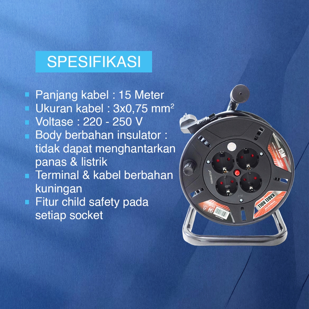 Kenmaster Kabel Roll 15 Meter 4 LB - 3 x 0,75 MM - SNI / Kabel Rol Colokan Listrik - KBRL053