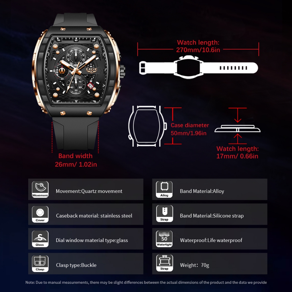 [Mall] LIGE WATCHES PRIA SPORT 50M TAHAN AIR KUARSA PRIA JAM TANGAN BERCAHAYA PRIA WATCH MEN