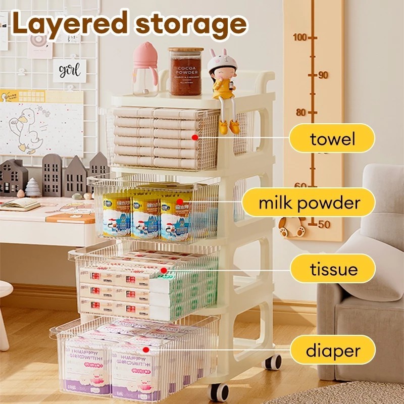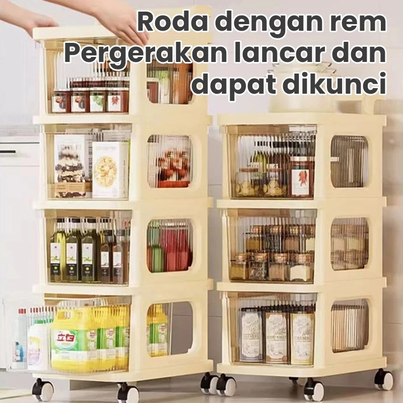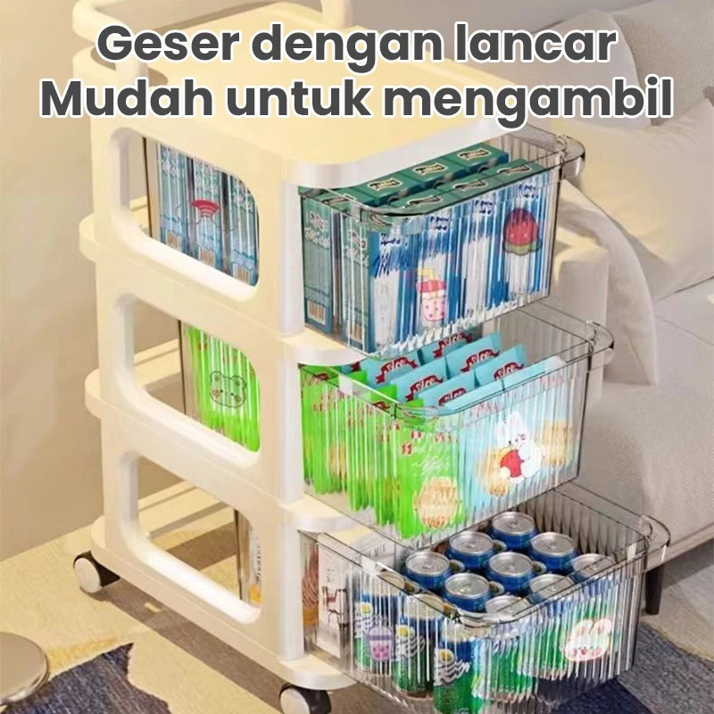 Rak Troli Multifungsi plastik bening 4-5 Tingkat - Penyimpanan Snack/Buah Desain Minimalis untuk Kamar Rak Troli Dorong