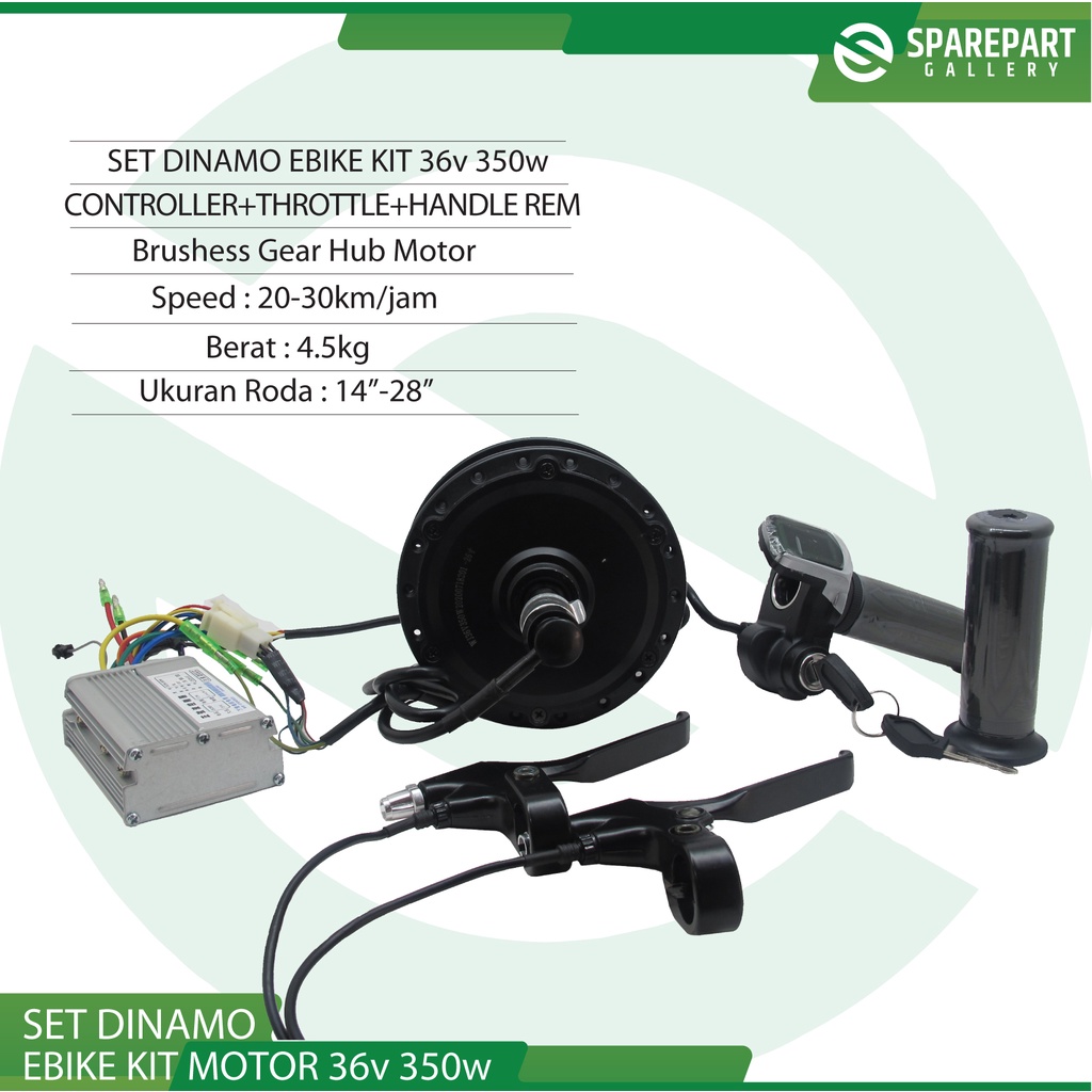 Set Ebike Kit velg Depan dinamo motor bldc 36v 350w velg jeruji 28-36hole