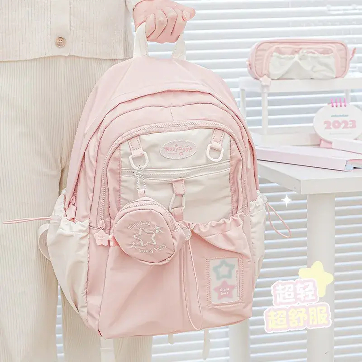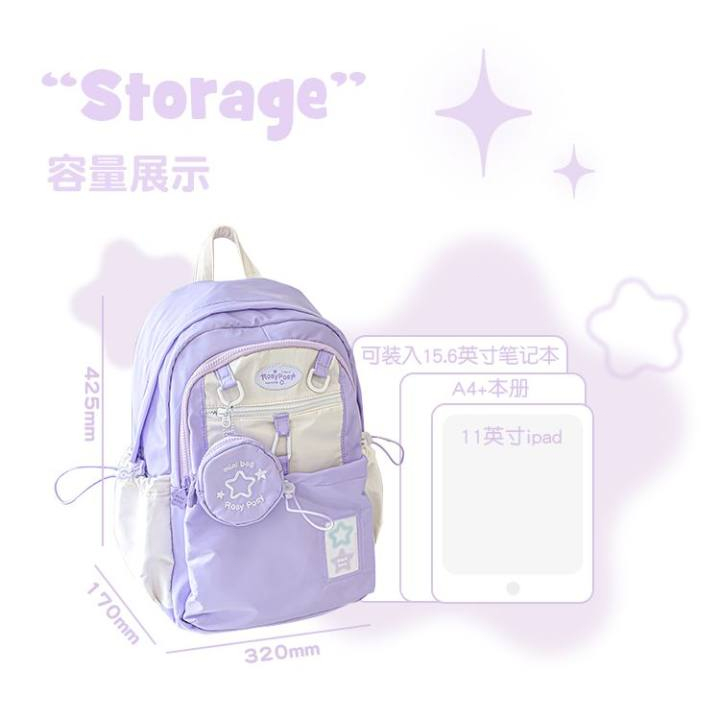Tas Sekolah Wanita Lucu Besar Korea Import Serut Ransel Warna Bentrokan Angin Akademi Serbaguna