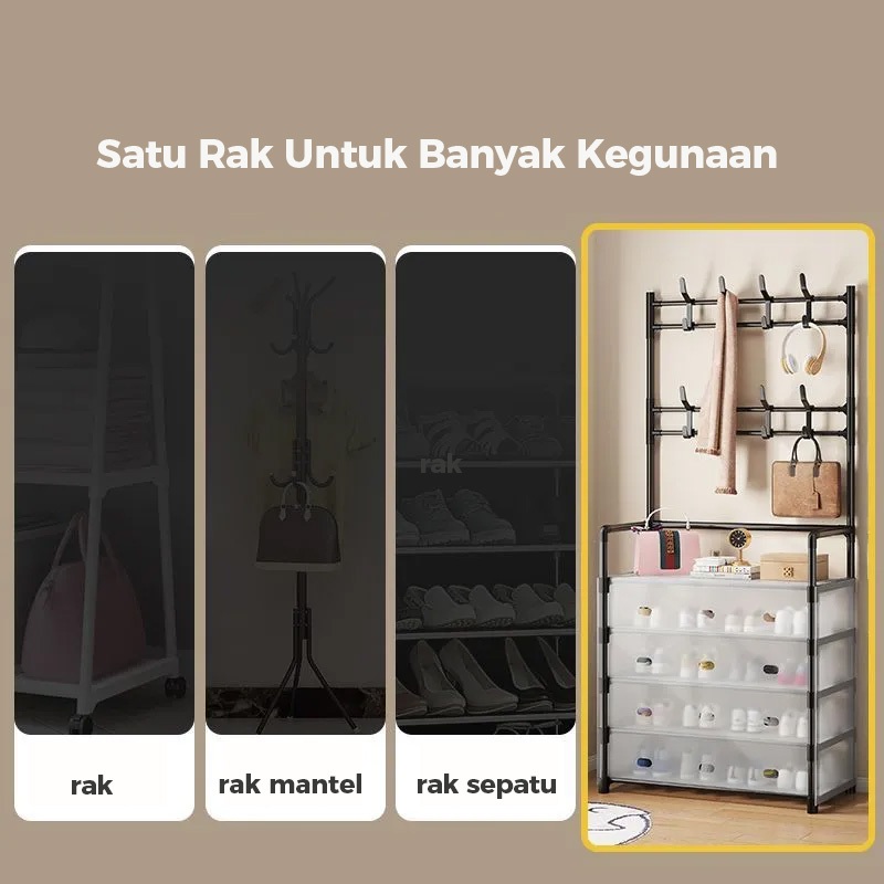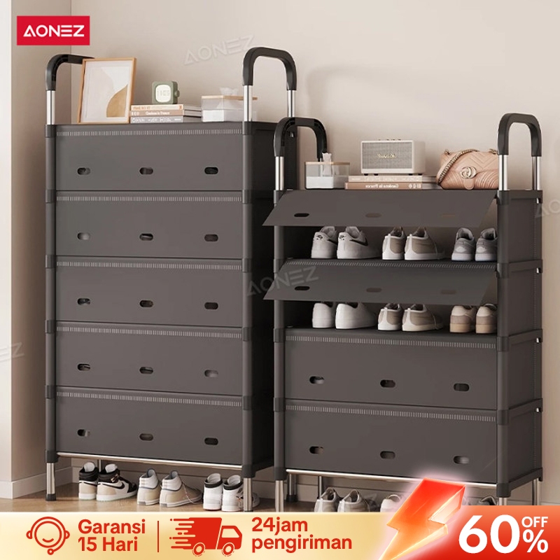 [Star]AONEZ Rak Sepatu Tertutup Anti Debu Serbaguna/Gantungan Tas Pakaian/ Rak Sepatu Besi Kuat Tebal/Rak Sepatu Susun/R
