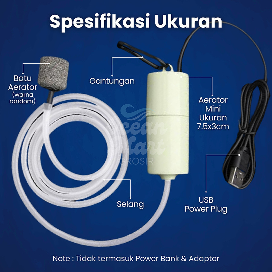 Pompa Mini USB Aerator Portable Akuarium Air Pump Pancing Pompa Oksigen Airator Aquarium Pancing Gelembung Udara Ikan