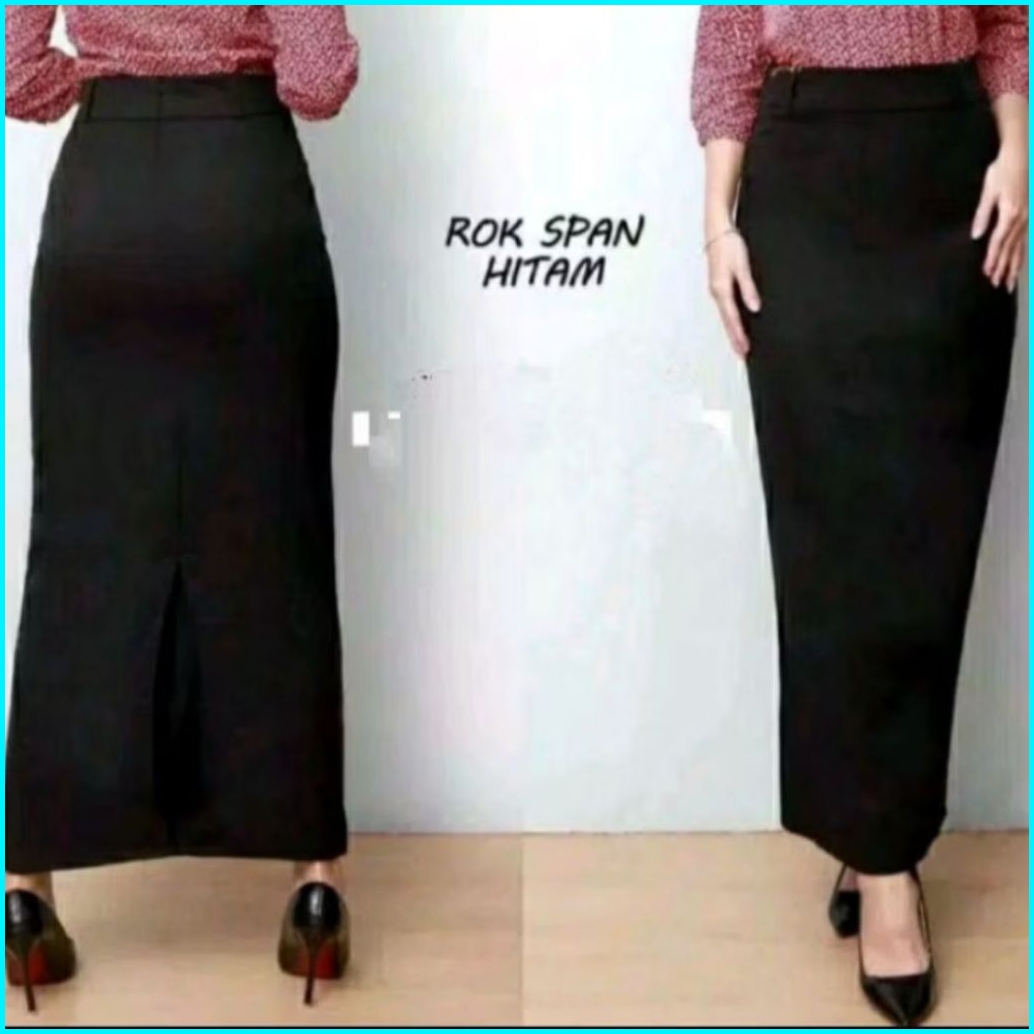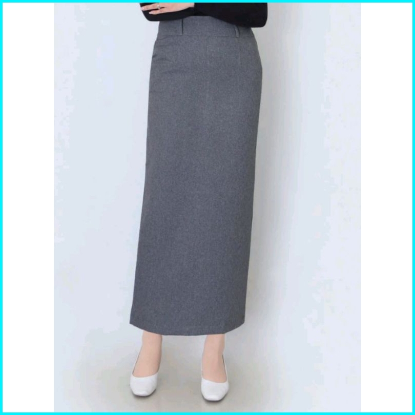 Rok Kerja Wanita Panjang Rok Span Rempel Belakang Size S - L5
