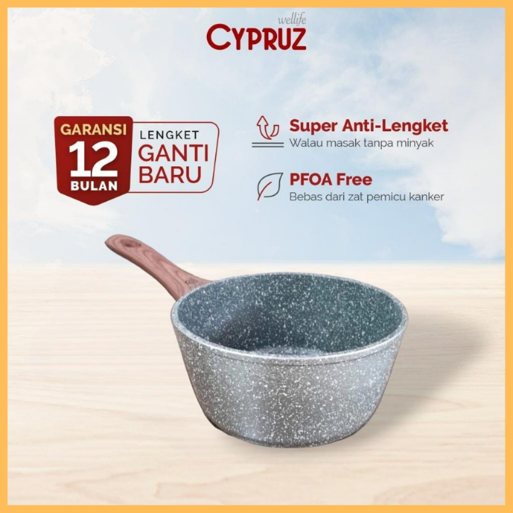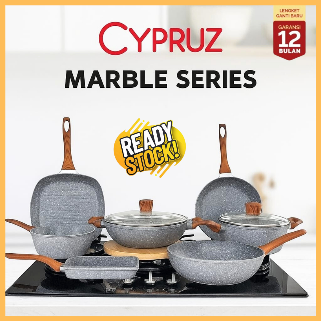 Cypruz Marble Wajan Teflon Anti Lengket Penggorengan Fry Wok Panci Sauce Pan Kuali Fry Pan Grill Pan