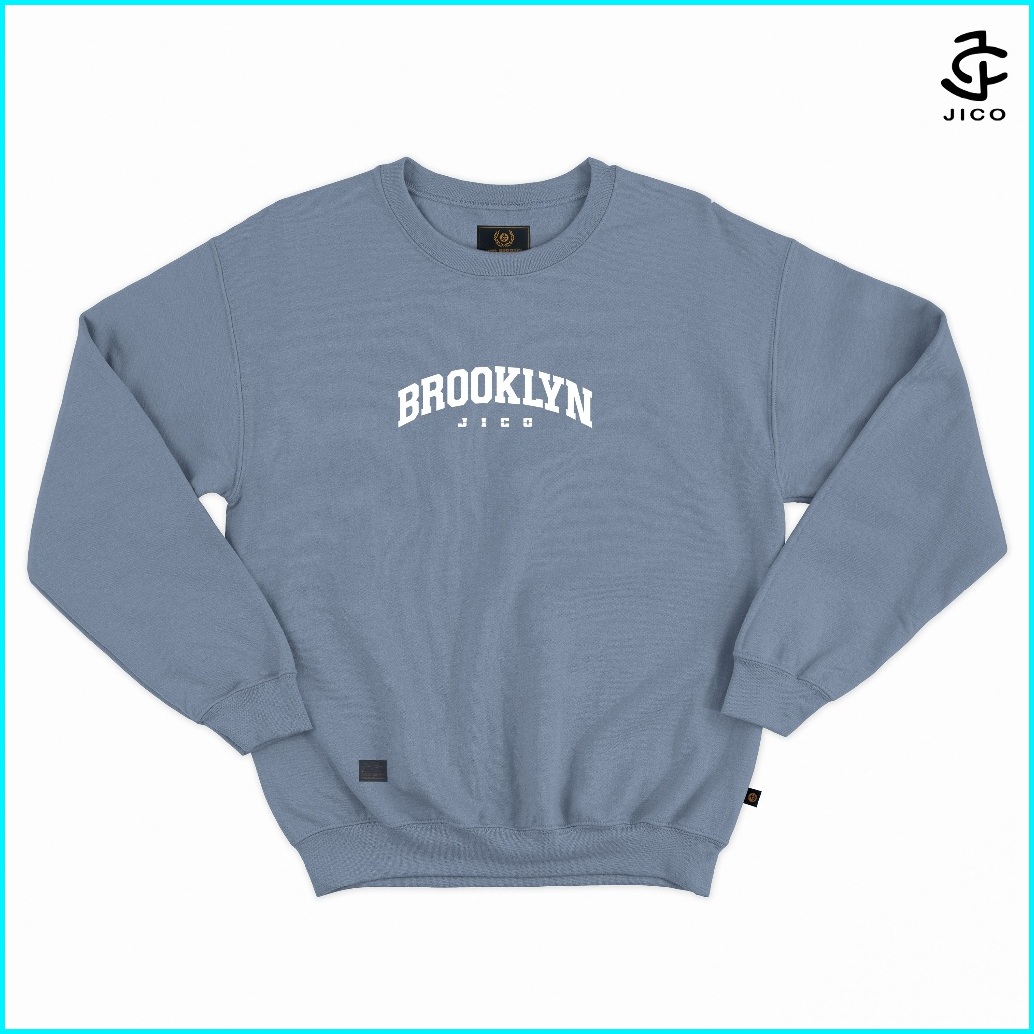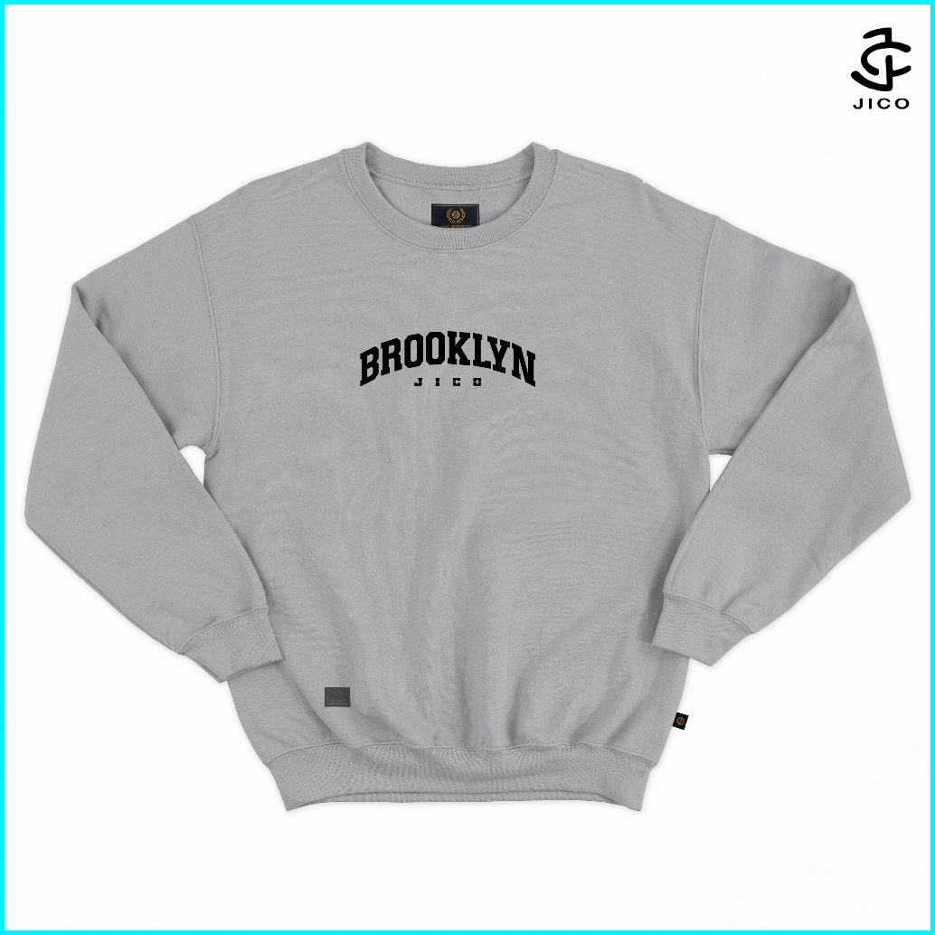 Jico - Sweater Crewneck Sablon Brooklyn M - Xxl Fleece Premium Warna Abu Misty
