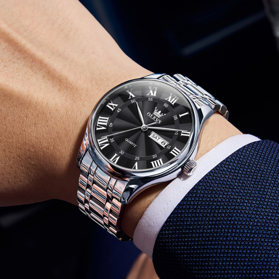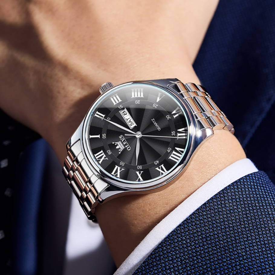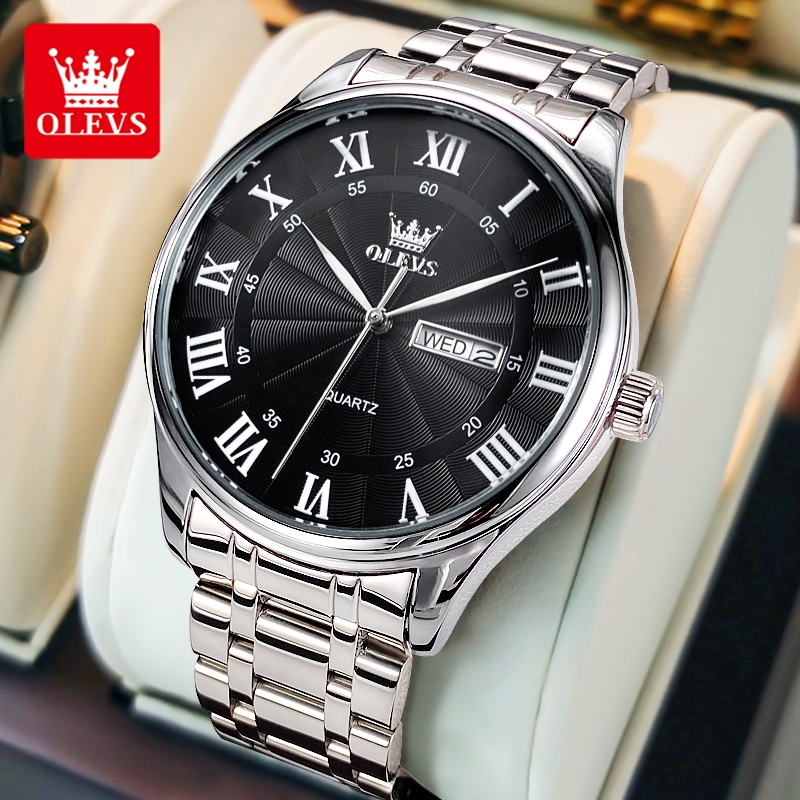 [Mall] OLEVS JAM TANGAN PRIA ANTI AIR ORIGINAL ANALOG COWOK TERBARU FASHION HITAM LUXURY WATCH MEN