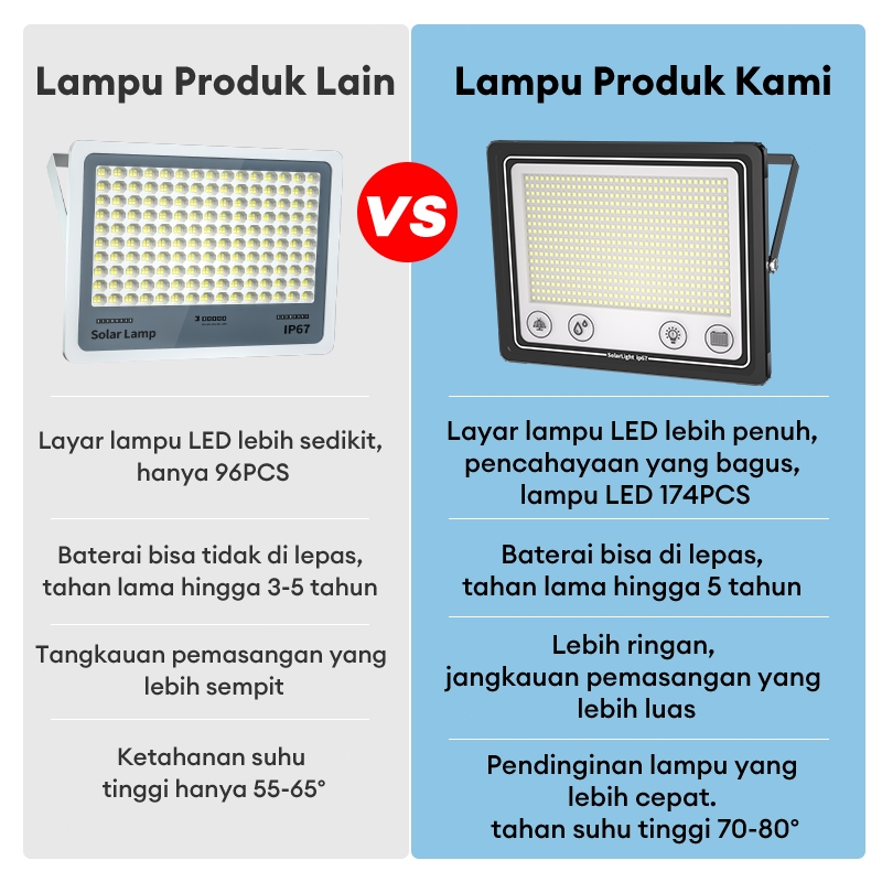 【Garansi 10 tahun】 Lampu tenaga surya Lampu sorot baterai surya Lampu Led Tenaga Matahari lampu luar ran super terang 25
