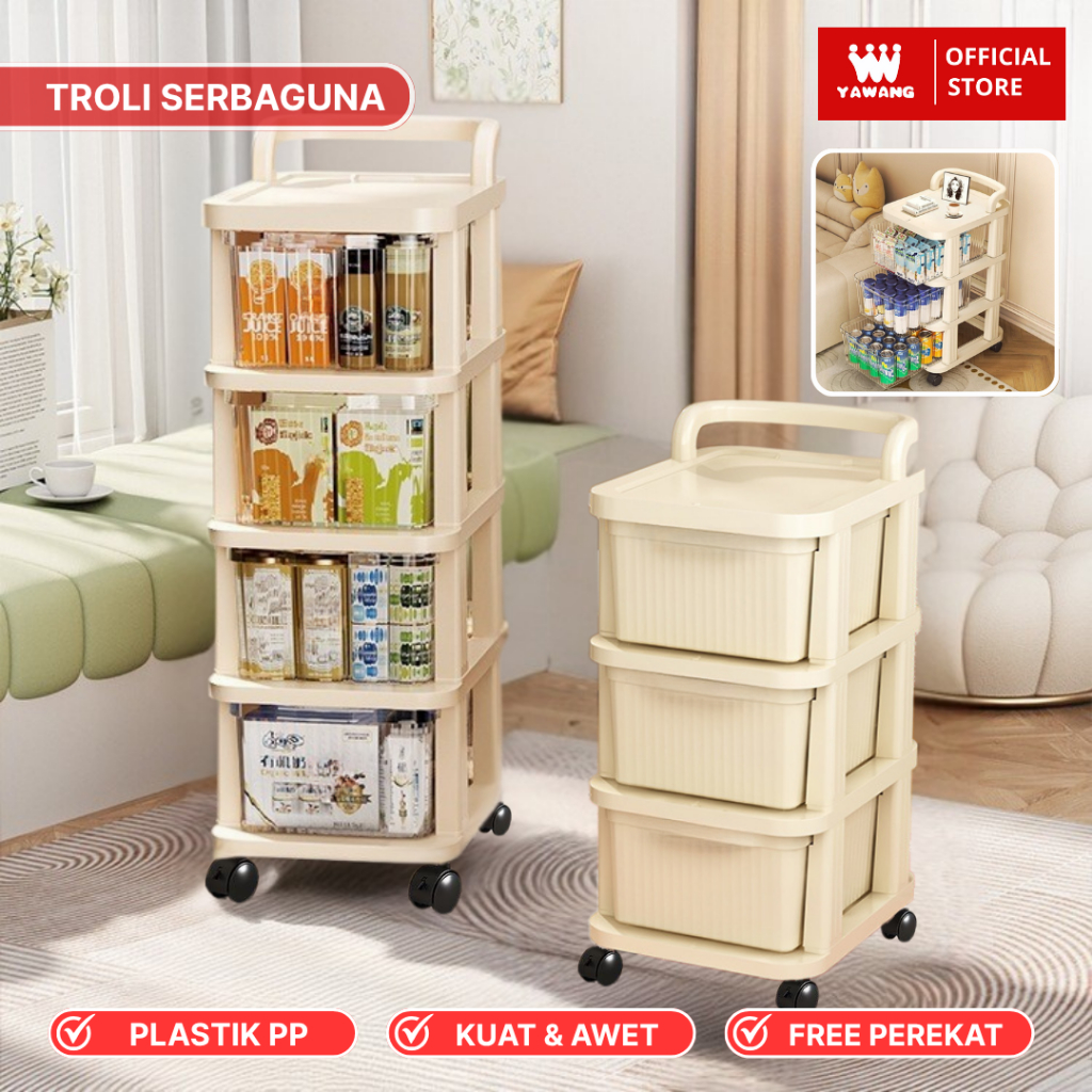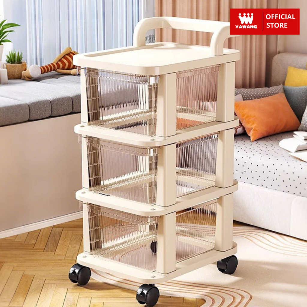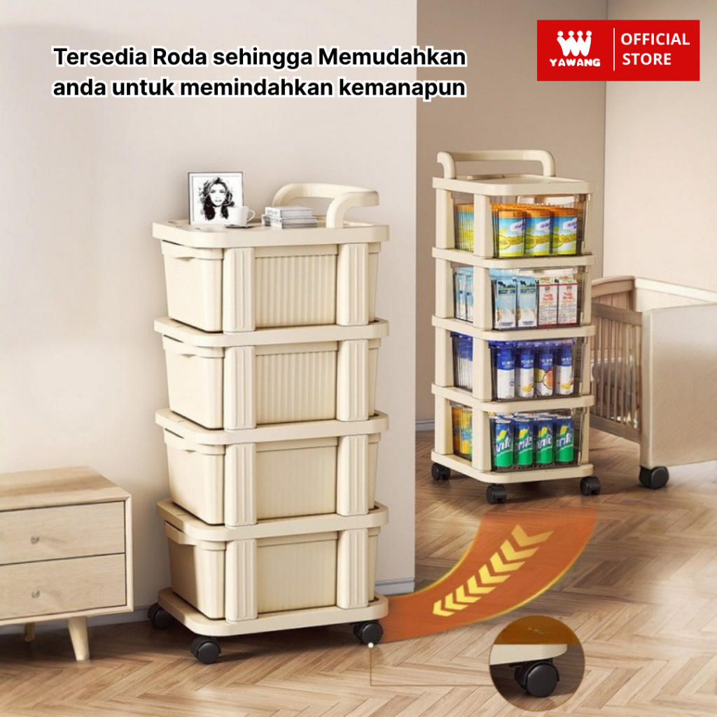 Yawang Rak Troli Serbaguna Drawer Penyimpanan Makanan Mainan Skincare Storage Model Susun dengan Roda Penyimpanan Dapur