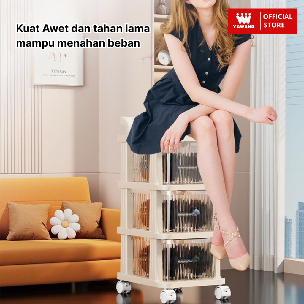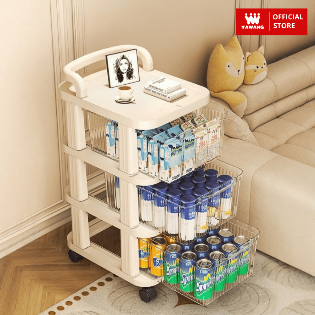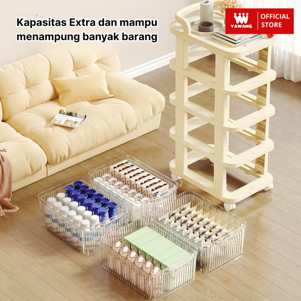 Yawang Rak Troli Serbaguna Drawer Penyimpanan Makanan Mainan Skincare Storage Model Susun dengan Roda Penyimpanan Dapur