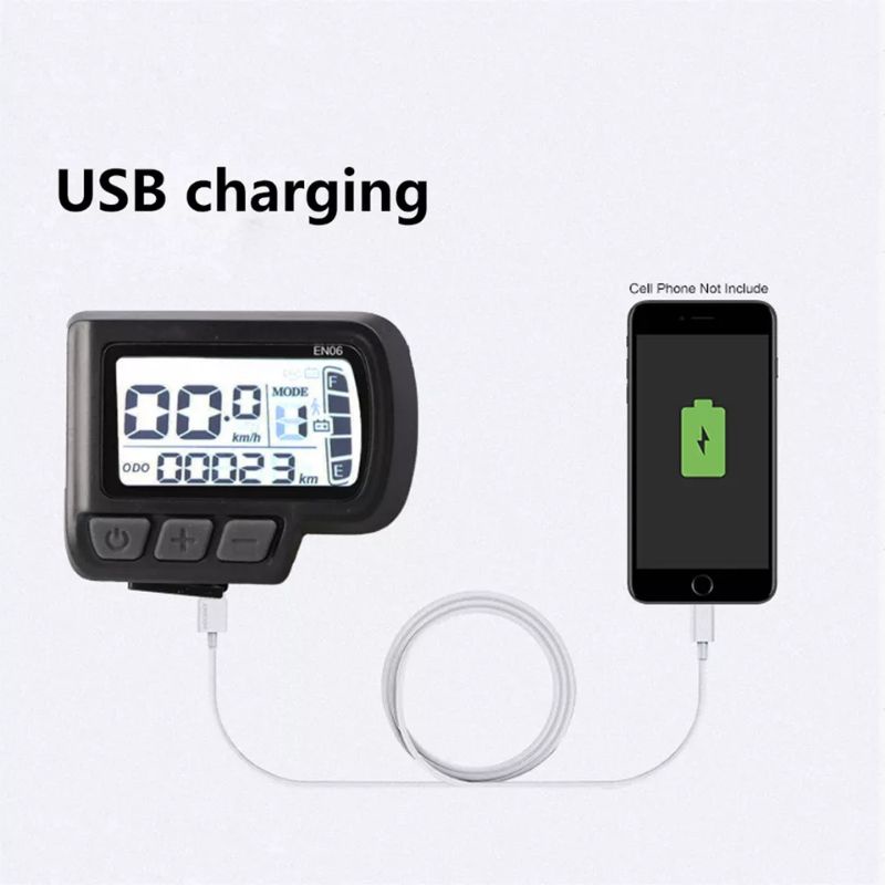 LCD DISPLAY EN06 SEPEDA LISTRIK 24V 36V 48V LAYAR SPEEDOMETER USB CHARGING INDIKATOR SCOOTER LISTRIK SKUTER ELEKTRIK SM