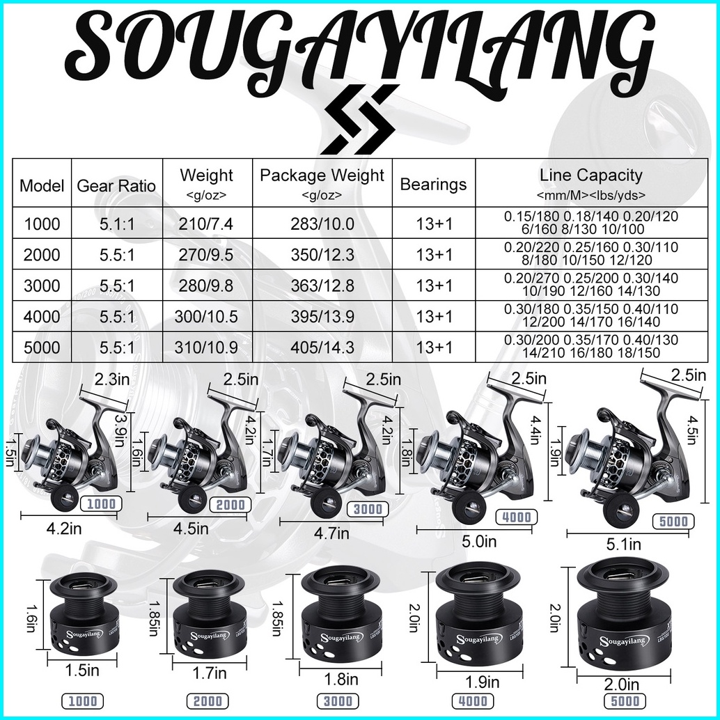 Sougayilang Power Handle Reel Pancing 1000-5000 5.5 1 Rasio Kecepatan Rotasi 14bb Gulungan Berputar Reel Cnc Handle Alat