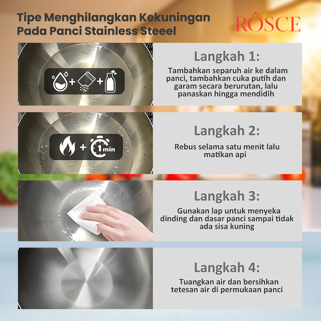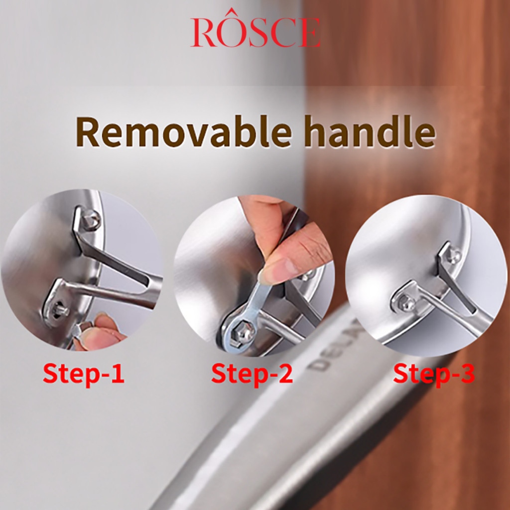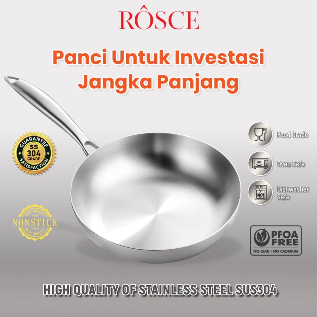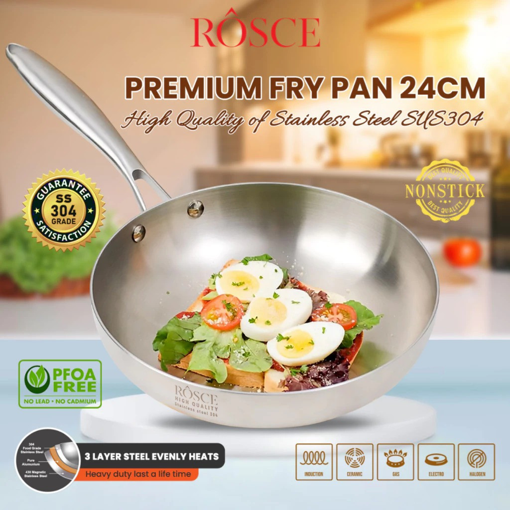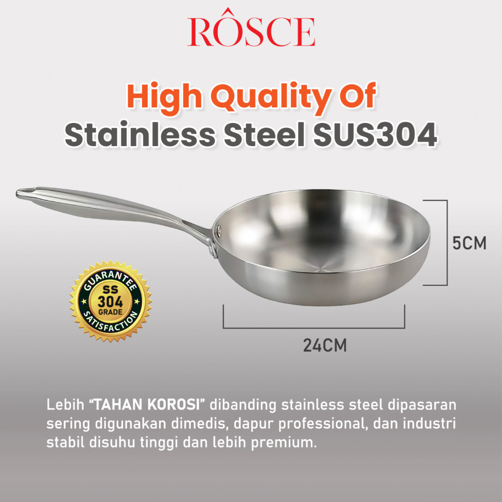 ROSCE Pure Fry Pan 24cm – Wajan Stainless Steel 304 Anti Karat & Tahan Lama