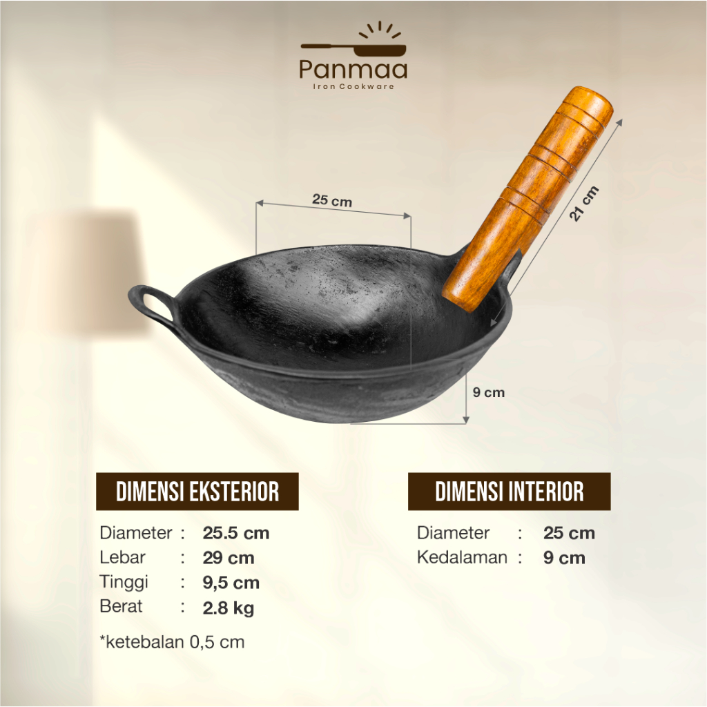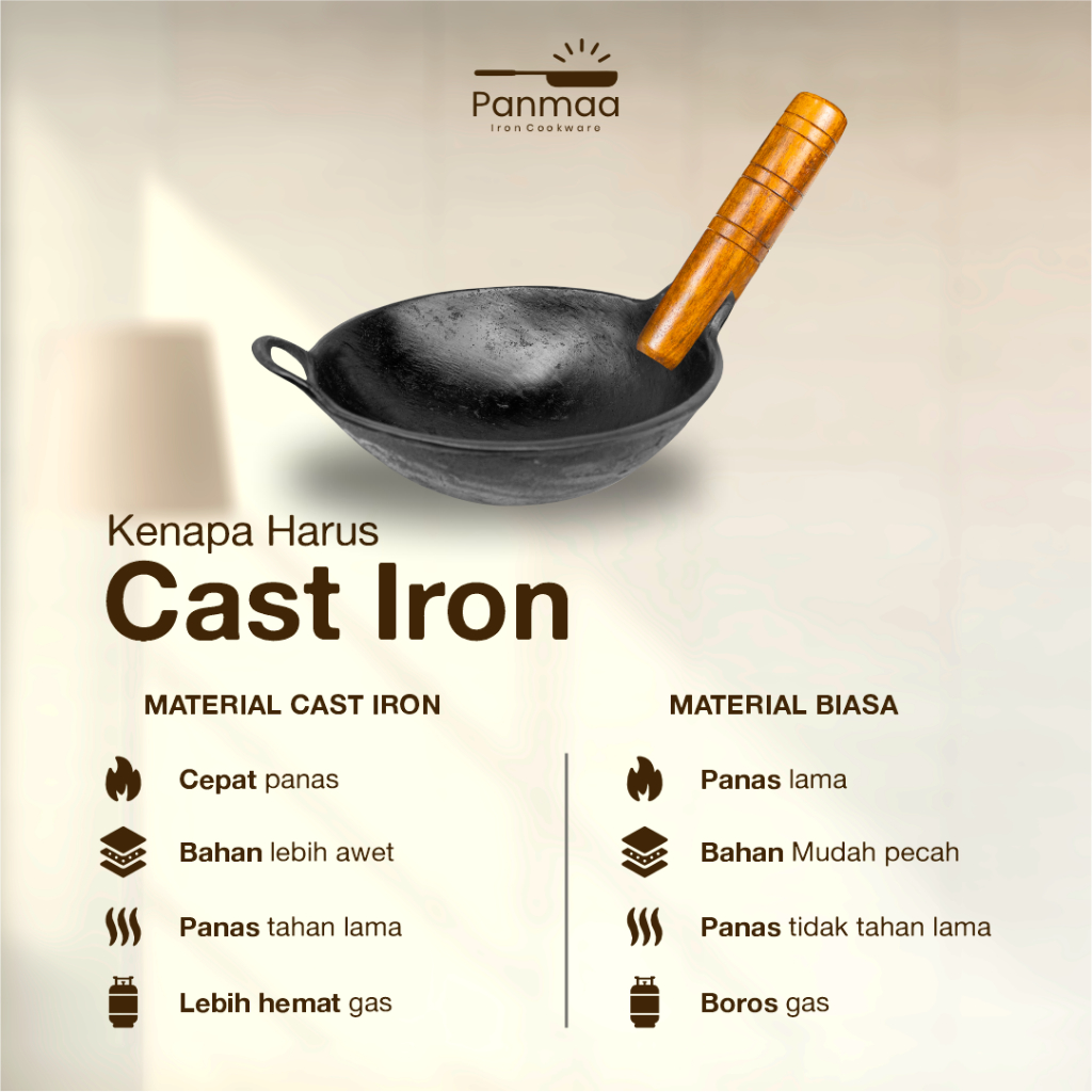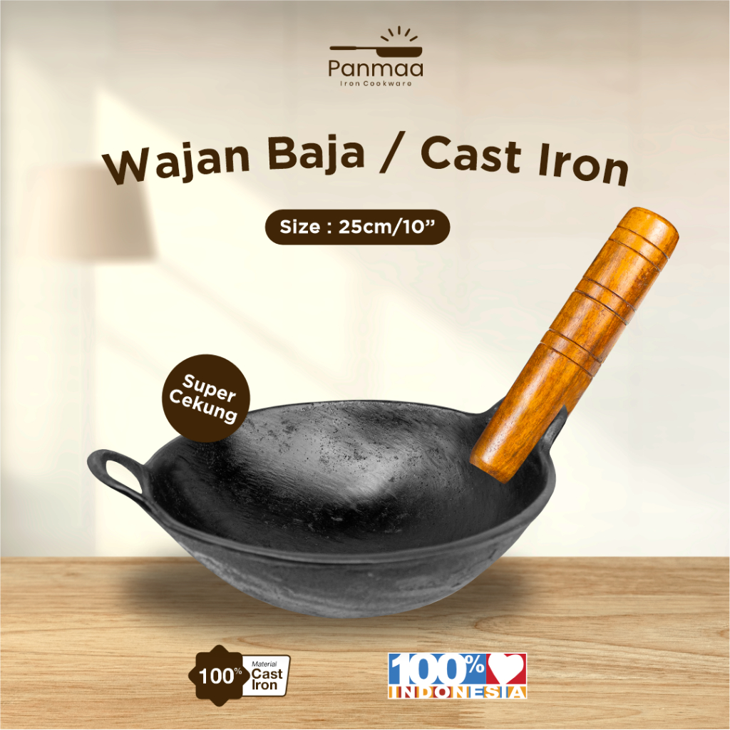 Wajan Baja Cor Super Cekung Pre Seasoned 10” (25cm) Super Cekung Tebal Anti Lengket / Kuali Besi Cor/ Wok Cast Iron / Wa