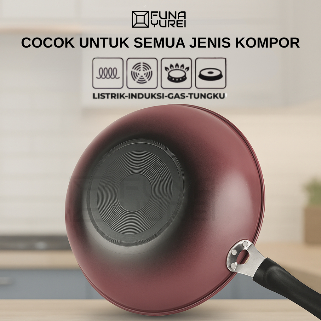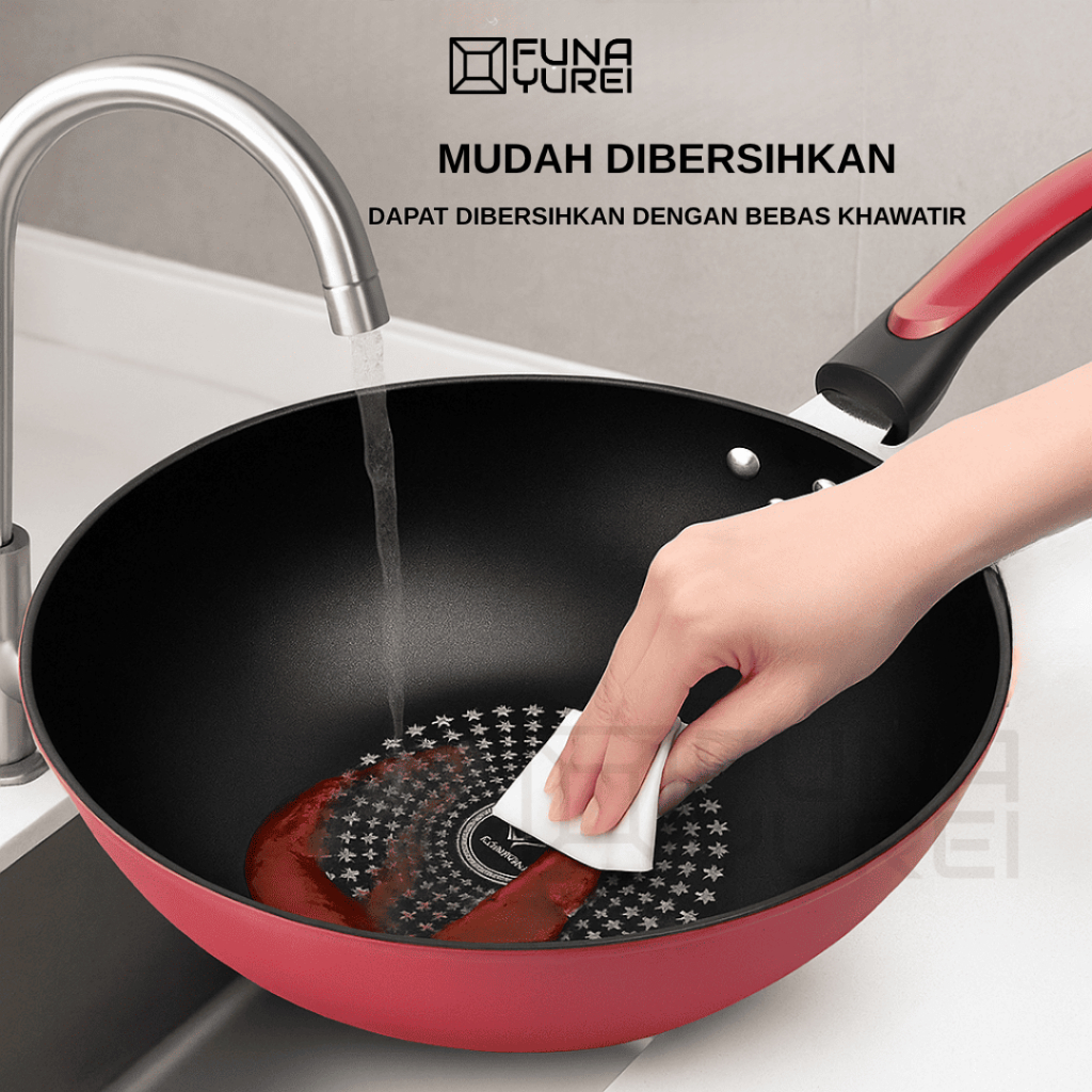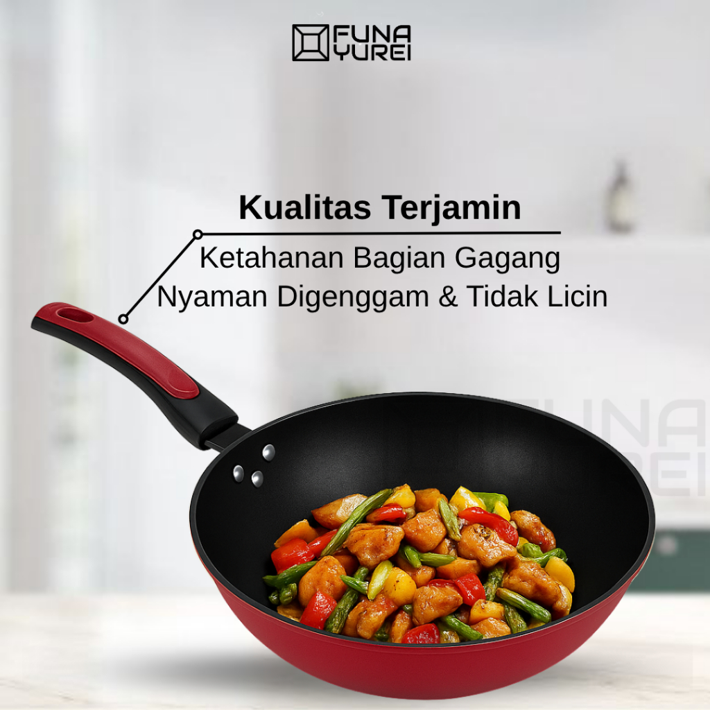 FUNAYUREI B3 Wajan Diamond Wok 32cm – Lapisan Batu Medis Anti Lengket + Bonus Spatula Masak