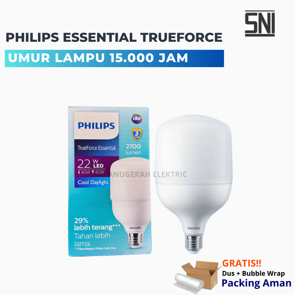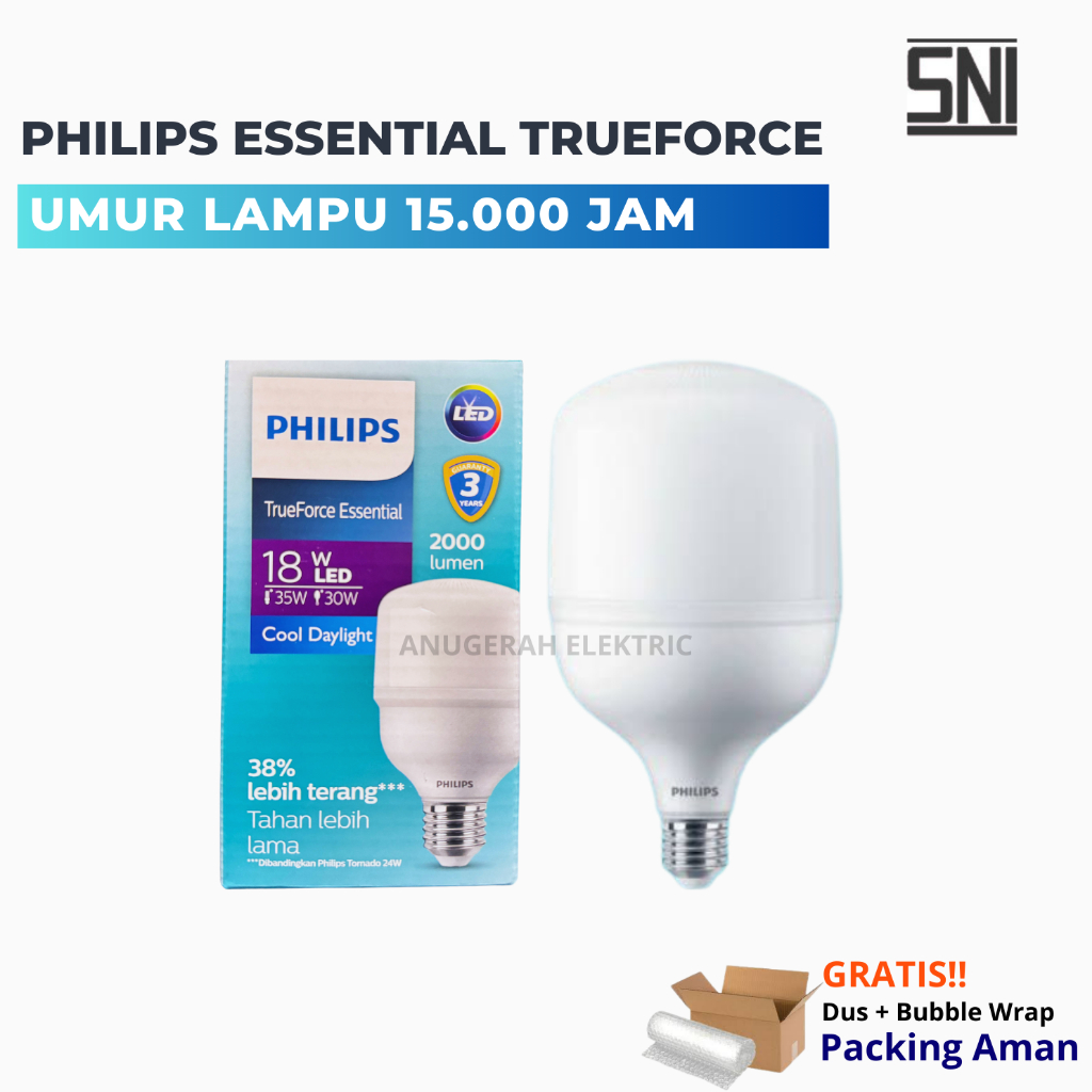 Philips LED Essential TrueForce Original 18W 22W 30WAT 40WATT Lampu Bohlam Capsule Cahaya Putih SNI