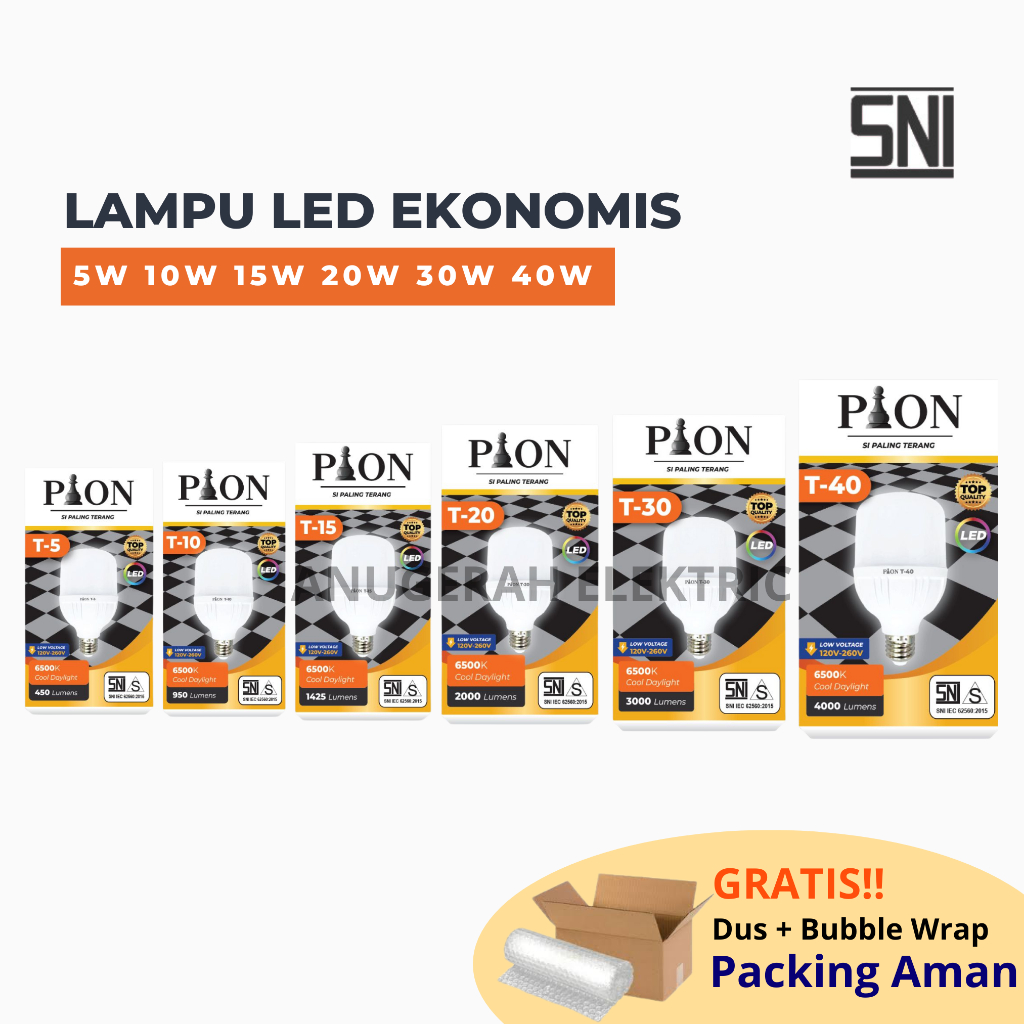 Lampu Bohlam LED Ekonomis Paket 10pcs 5W 10W 15W 20W 30W 40WATT Cahaya Putih Capsule PION LED SNI