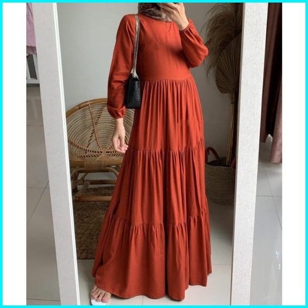 Gamis Rayon Polos Premium Gamis Susun Resleting Depan Busui Ruffle Gamis Muslim Homey Dres Polos