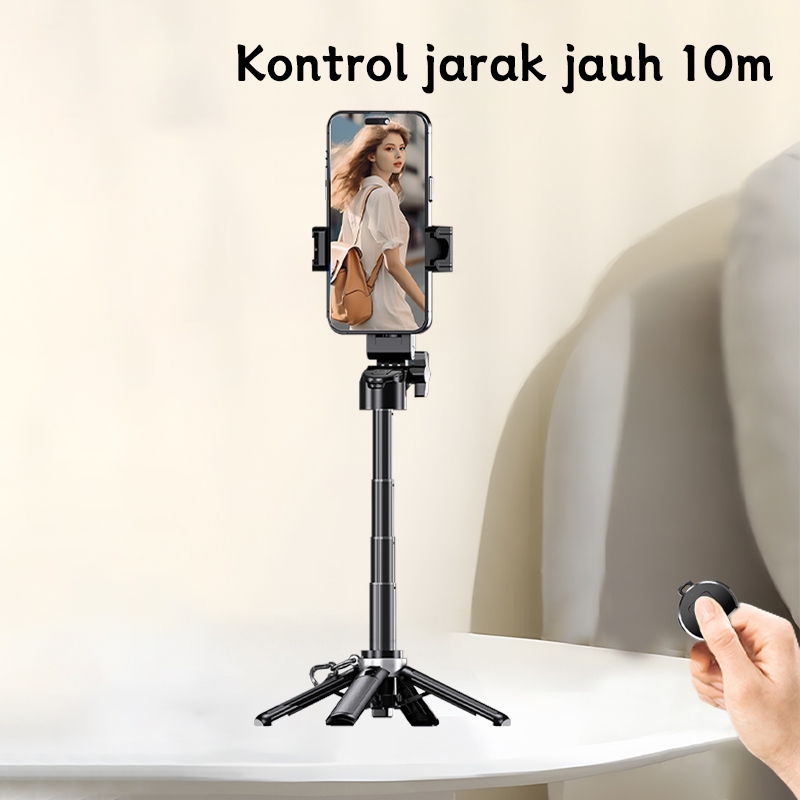 Trbest M1 Mini Selfe Stick Aluminium Mini Grip 4 Kaki Tongsis Tripod Bluetooth Remote Control Tripod 3 in 1 Tongsis Trip