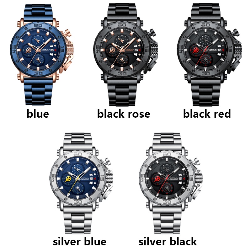 [Mall] JAM TANGAN CRRJU PRIA SPORT CHRONOGRAPH MENS WATCHES T0P BRAND LUXURY FULL STEEL QUARTZ CLOCK WATERPROOF BIG DIAL WATCH MEN JAM TANGAN GLOW IN THE DARK