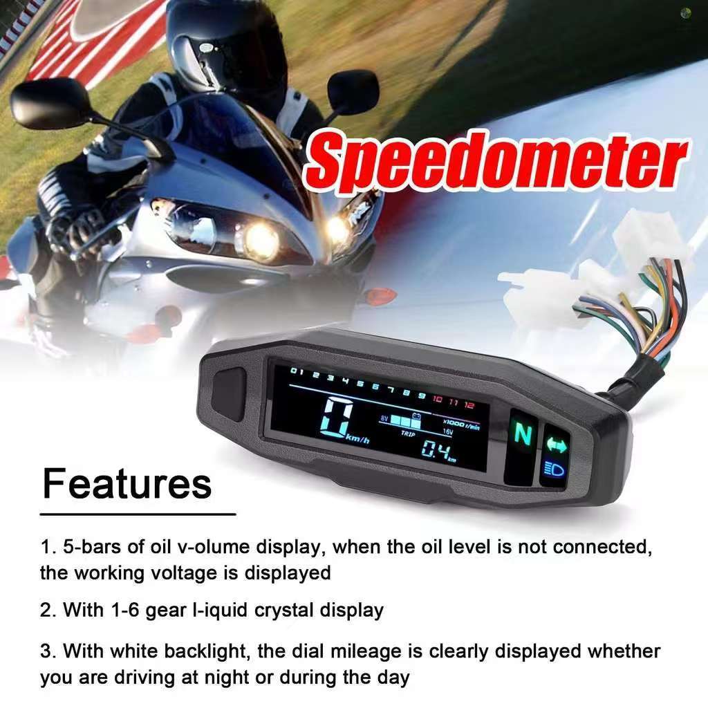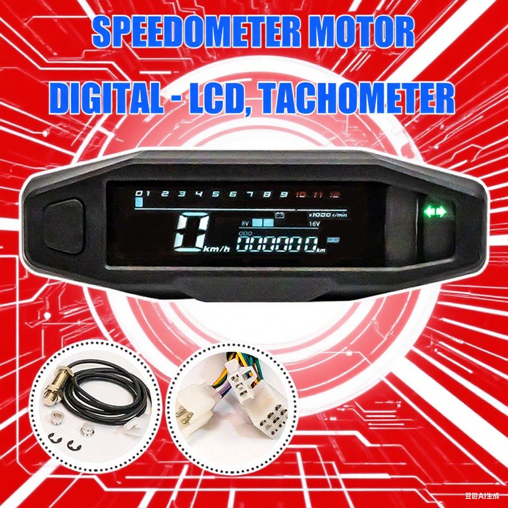 Speedometer Motor Digital - LCD, Tachometer, Bahan Bakar (Universal)【】
