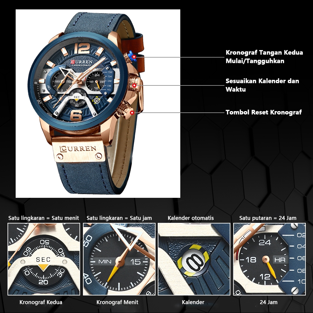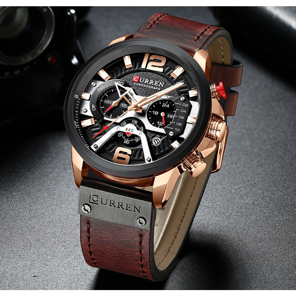 [Mall] CURREN JAM TANGAN PRIA QUARTZ CHRONOGRAPH MEWAH ANTI AIR DENGAN STRAP KULIT SPORT MILITER WATCH BEST SELLER