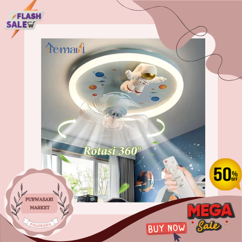 lampu kamar anak Lampu Kipas Angin Gantung Plafon Remote Lampu Plafon Astronaut 3 Warna LED Lampu Hias Kamar 120cm*48cm