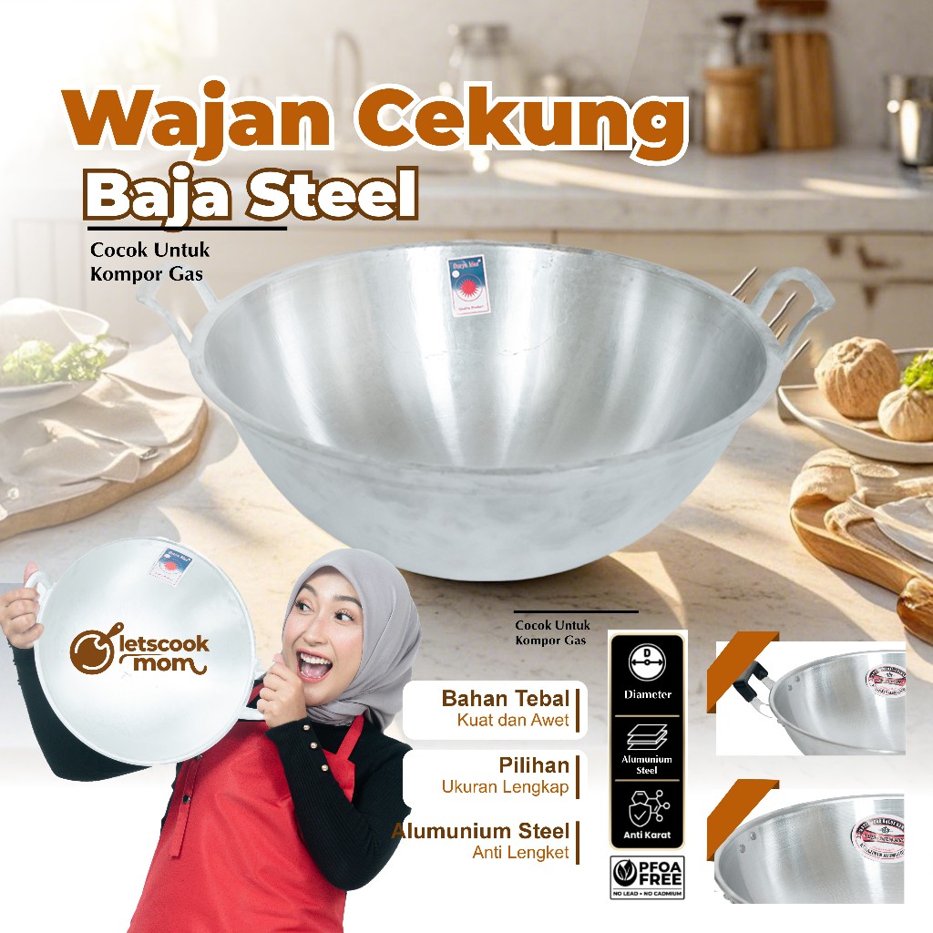 Wajan Cekung Anti Lengket No 10,12,14,16,18,20,22,24 Bahan Baja