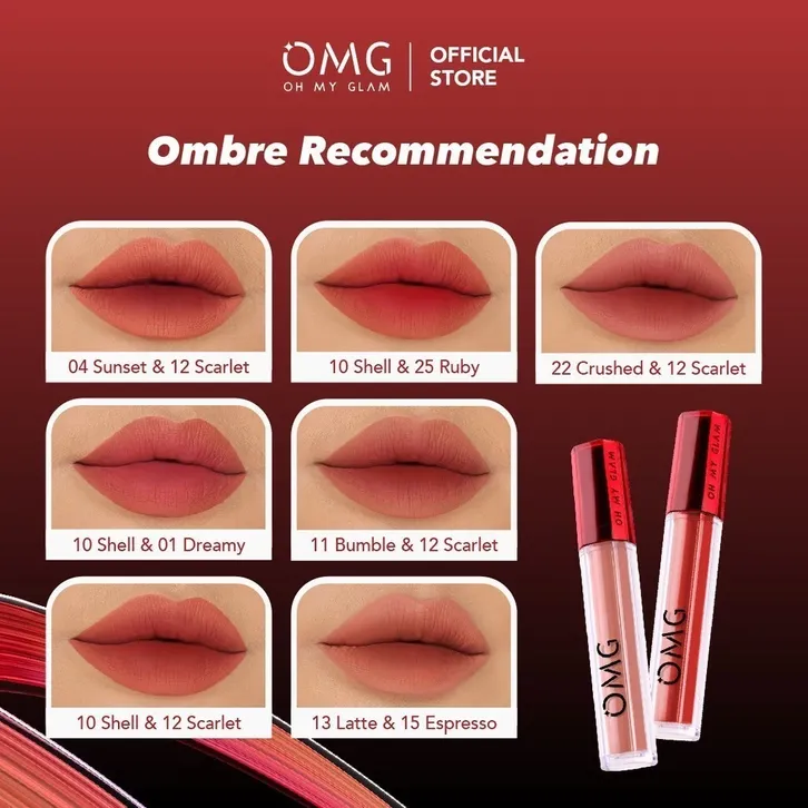 OMG 01 Dreamy, OMG 04 Sunset, OMG 10 Shell, OMG 11 Bumble, OMG 12 Scarlet, OMG 13 Latte, OMG 14 Cappucino, OMG 15 Espresso, OMG 18 Luxe, OMG 19 Spiced, OMG 20 Blossom, OMG 21 Passion, OMG 22 Crushed, OMG 23 Rose, OMG 24 Berry, OMG 25 Ruby, OMG 26 EXTRA, OMG 27 Strike, OMG 28 Cromboloni, OMG 29 Berry Pancake, OMG 30 Cookie Bomb