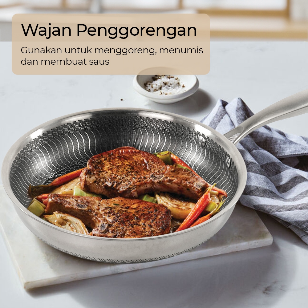 Wajan Penggorengan Frying Pan Stainless Steel Anti Lengket 27.5cm - 316 - Silver