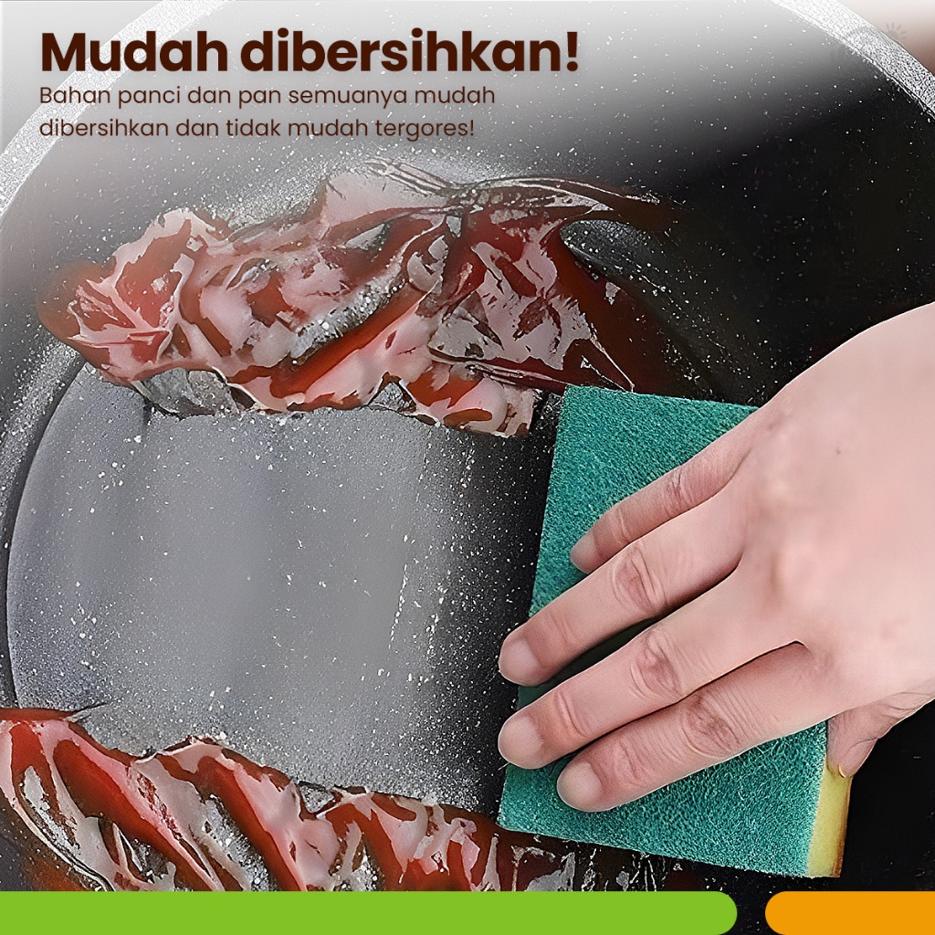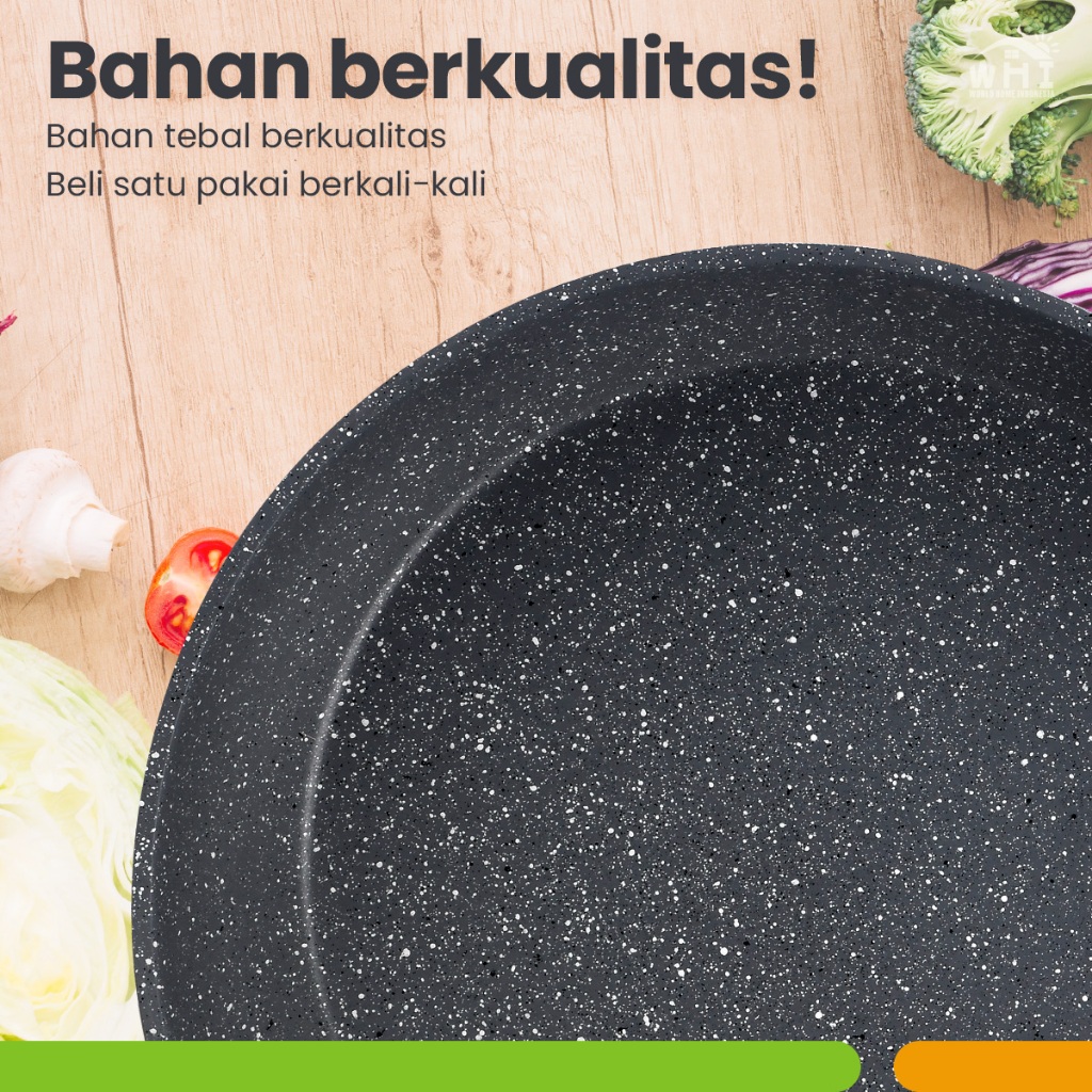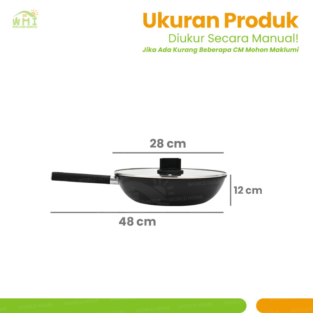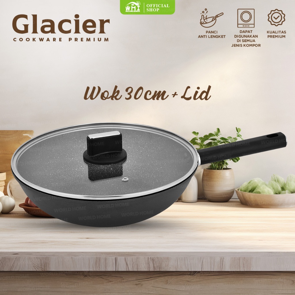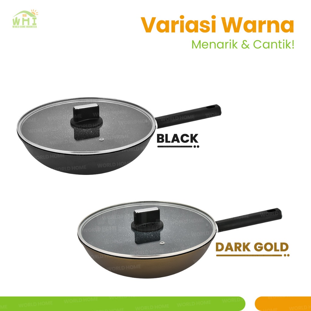 World Home Wajan Glacier Wok 28cm Granite Coating Anti Lengket Wajan Gagang Dengan Tutup Kaca