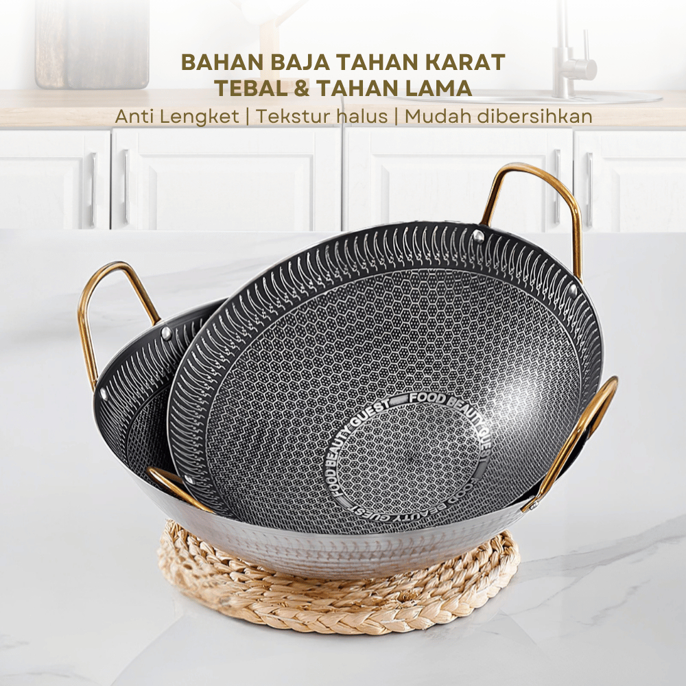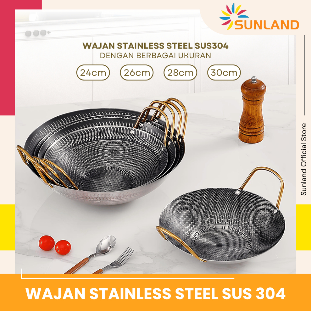 Sunland Wajan Penggorengan Stainless Anti Lengket Set 4 Ukuran dengan Pegangan Kuali Premium Quality