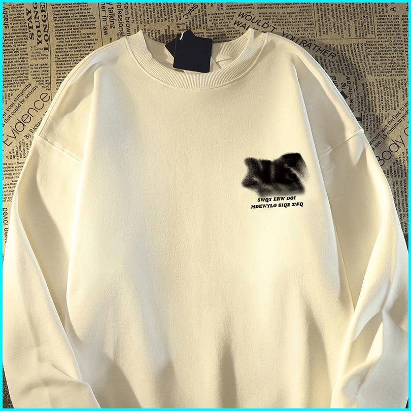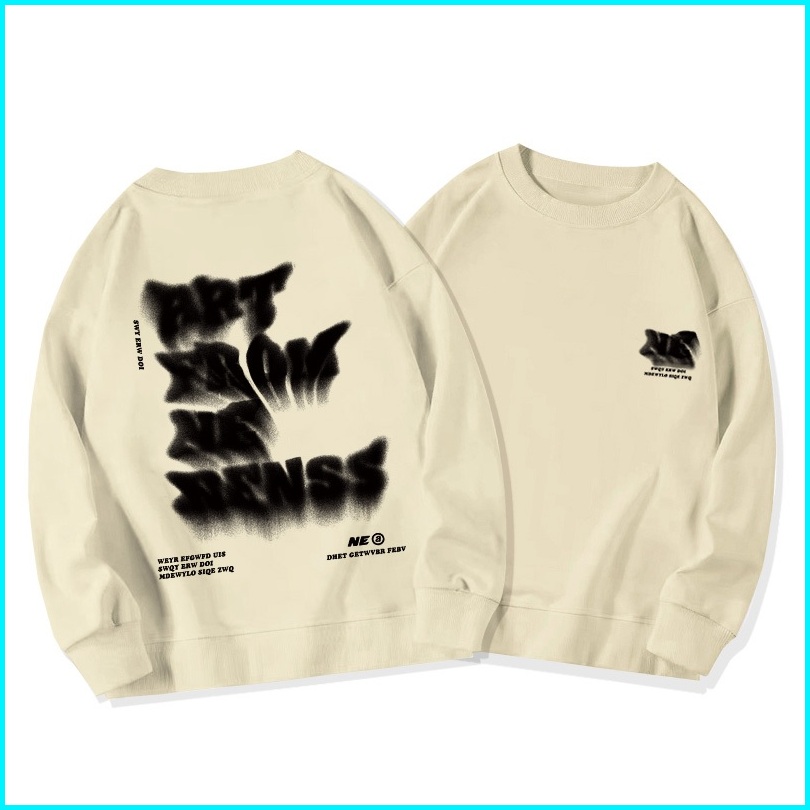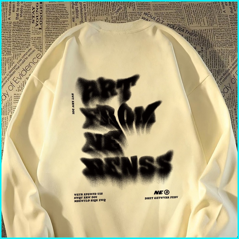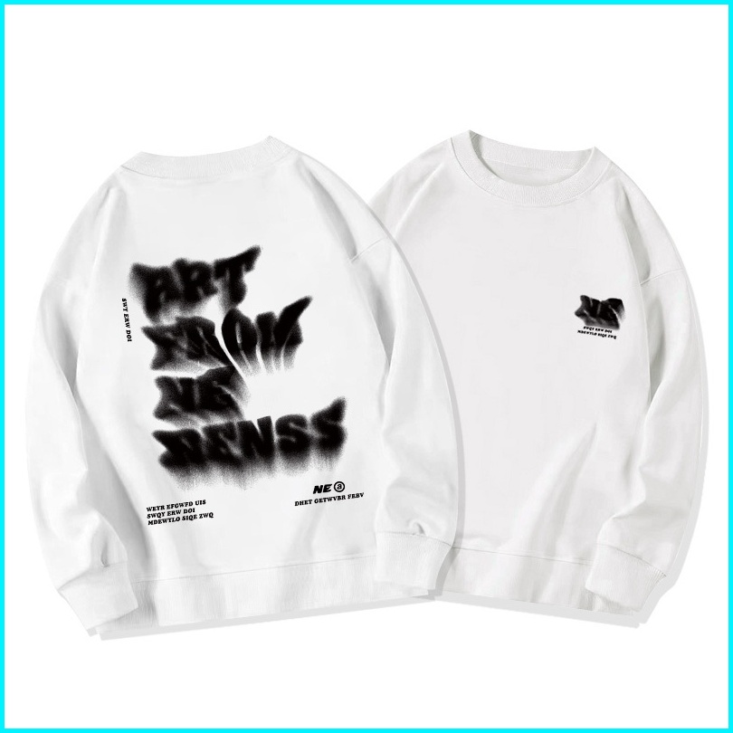 Fastfash Crewneck Sweater Pria Dan Wanita Lengan Panjang Lengan Panjang Oversize Huruf Artistik Kabur Switer Crewneck Ne