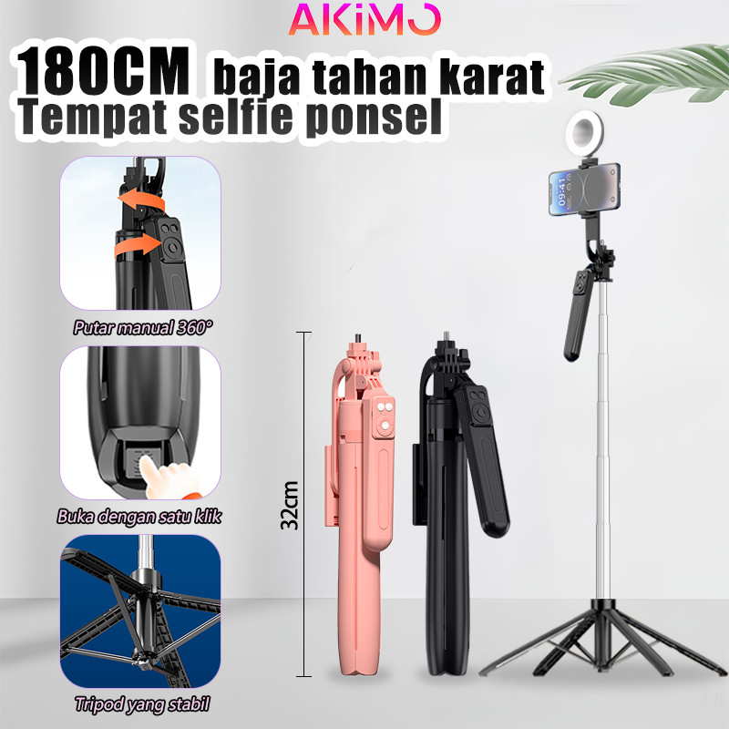 AKIMO Tongsis Tripod Selfie Stick 1/4 Adaptor Stainless Steel HP Kamera DSLR 180cm Tongsis 7 Tombol Remote Control Bluet