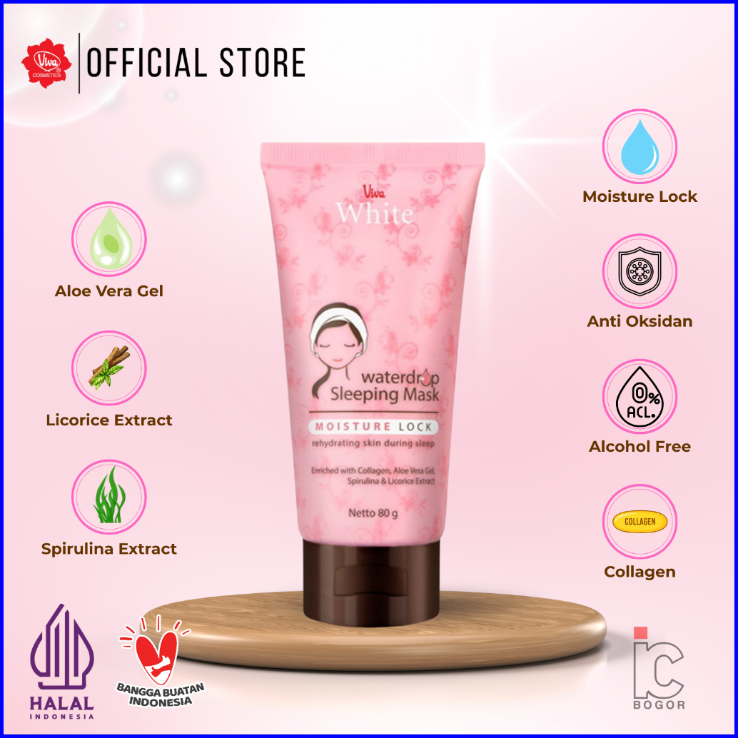 Viva White Waterdrop Sleeping Mask 80gr Masker Malam Mencerahkan Melembapkan Anti Aging