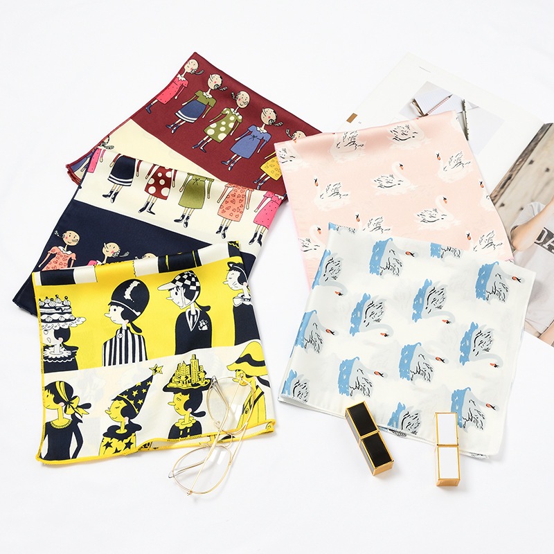 Syal Persegi Kecil 50*50Cm untuk Wanita Syal Sutra is Serbaa untuk Wanita Syal Pramugari Pramugari Profesional Retro ji