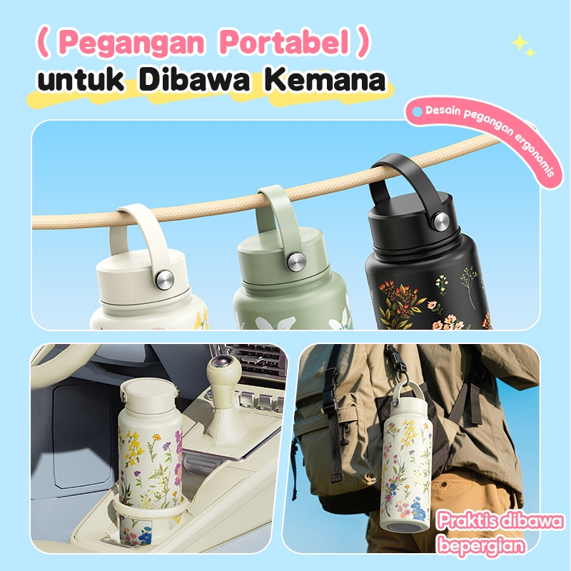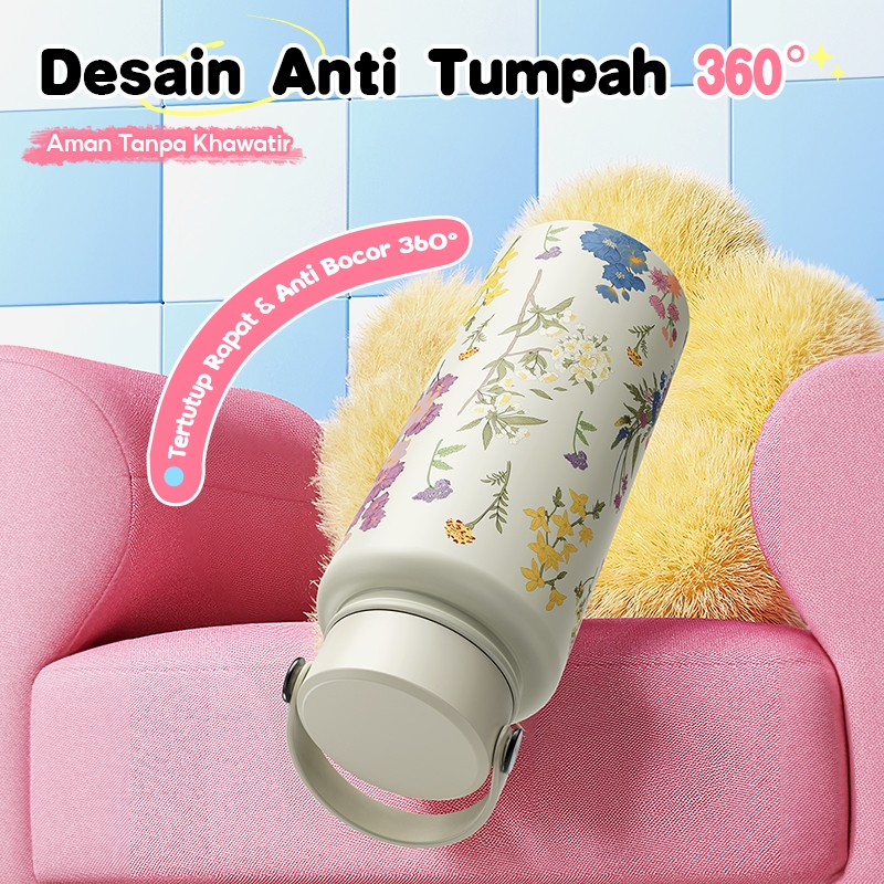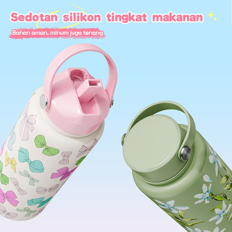MODOFO Tumbler 1L Premium 12 Jam Tahan Panas/Dingin - 304 Stainless Motif Aesthetic Unik Anti Bocor