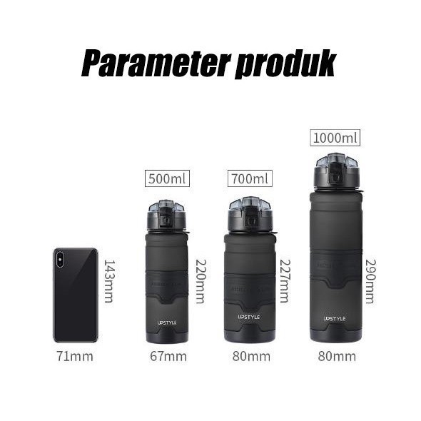1500ML Botol Minum UPSTYLE PREMIUM SPORT WATER BOTTLE FROSTED Olahraga Sedang USA Tritan PORTABLE CUP BPA FREE