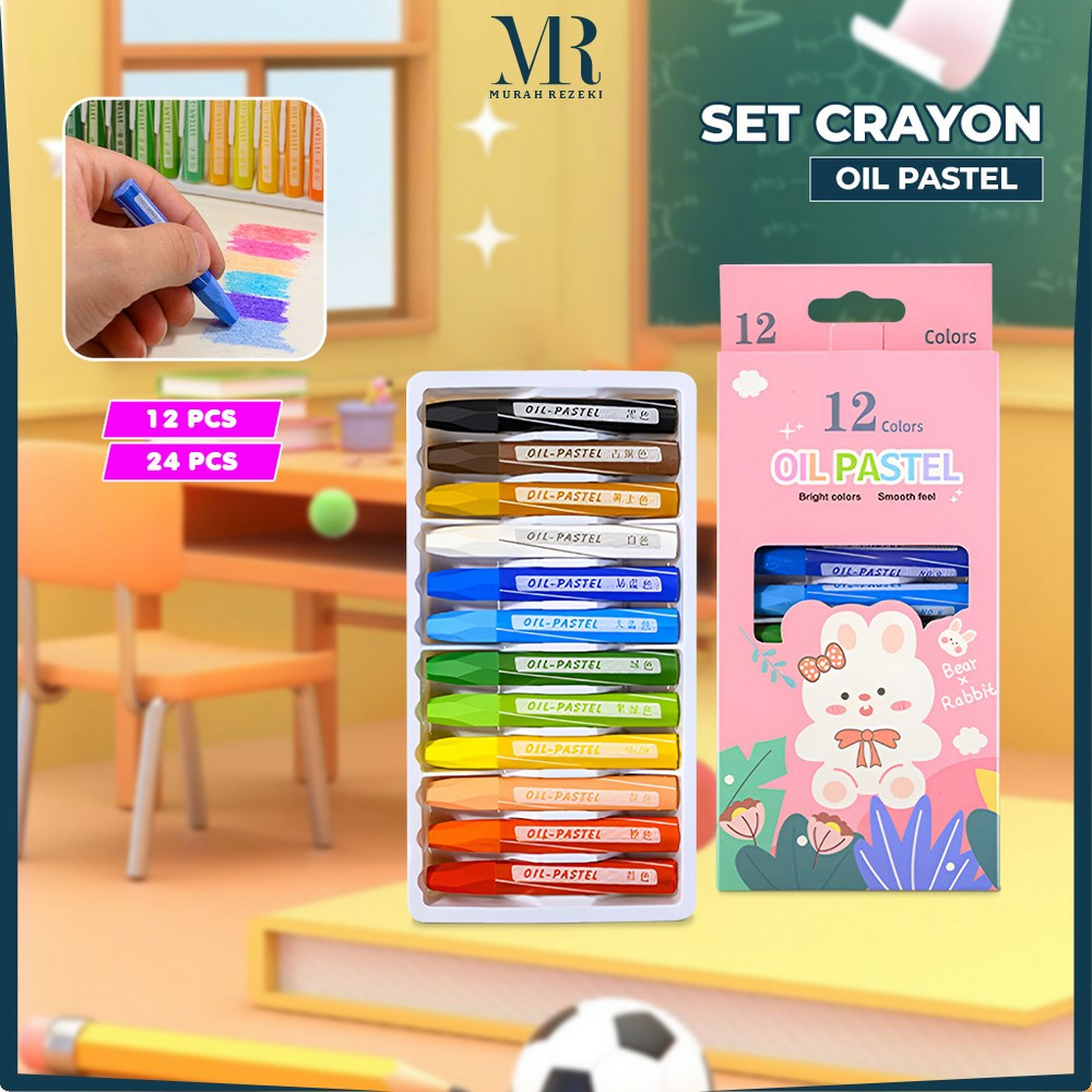 Set Crayon Oil Pastel Isi 12 dan 24 Warna Motif Kartun Anak / Krayon Pigmentasi Tinggi Aman Untuk / Set Perlengkapan Mew