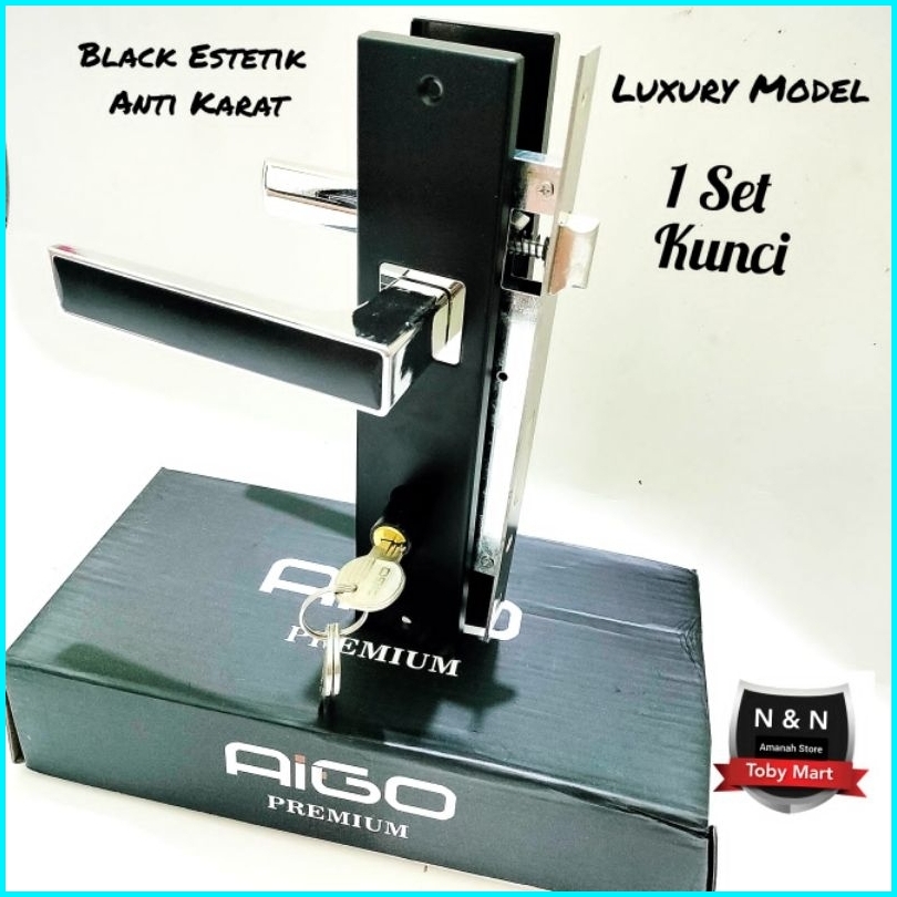 Aigo Premium - Handle Gagang Pintu Rumah 1set Kunci Black Series Estetik