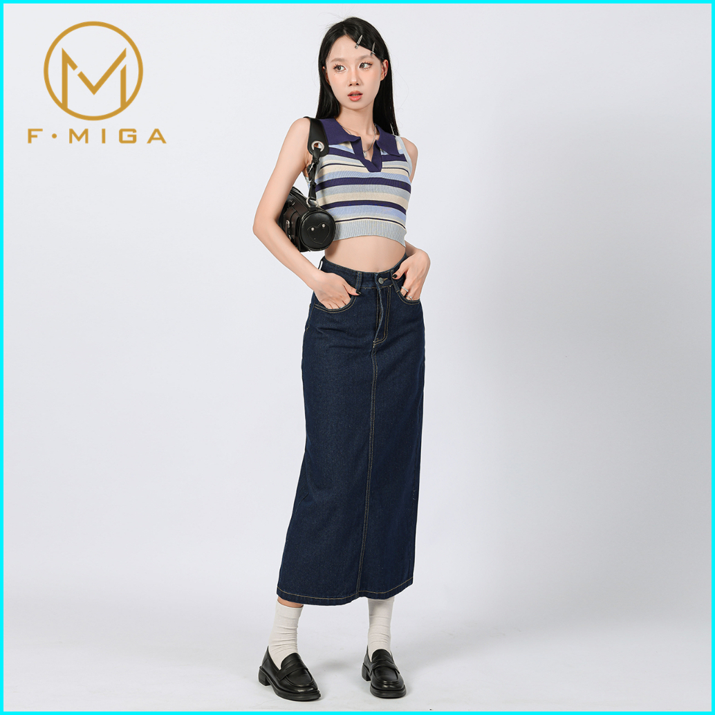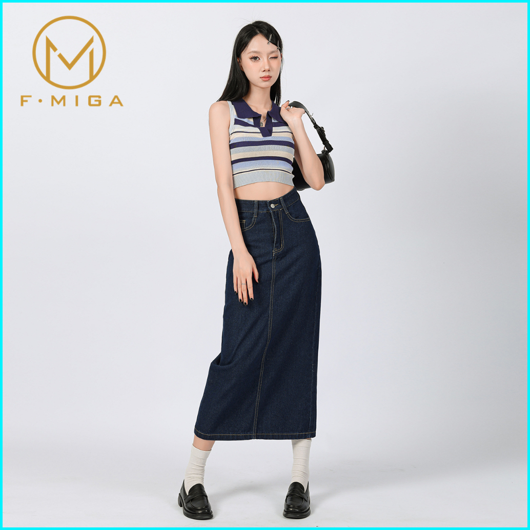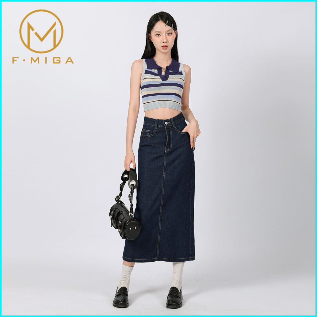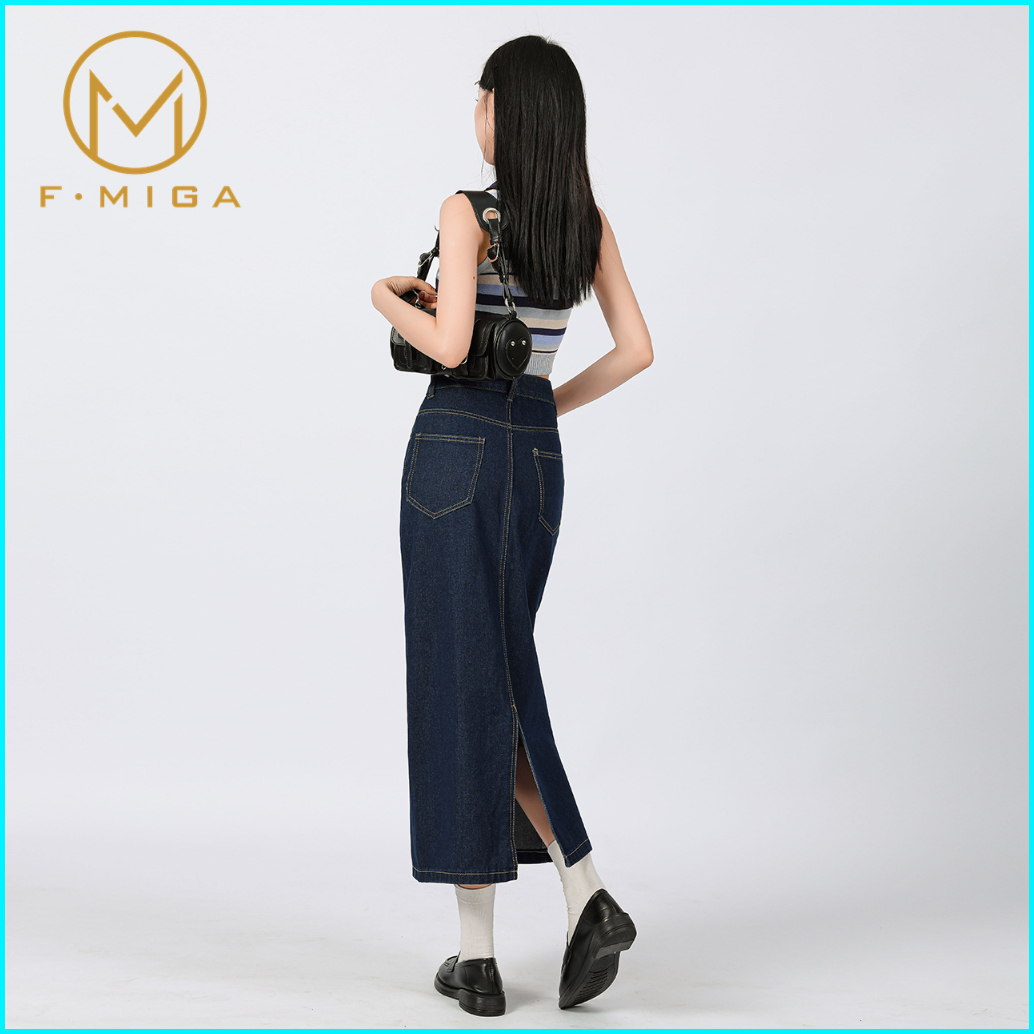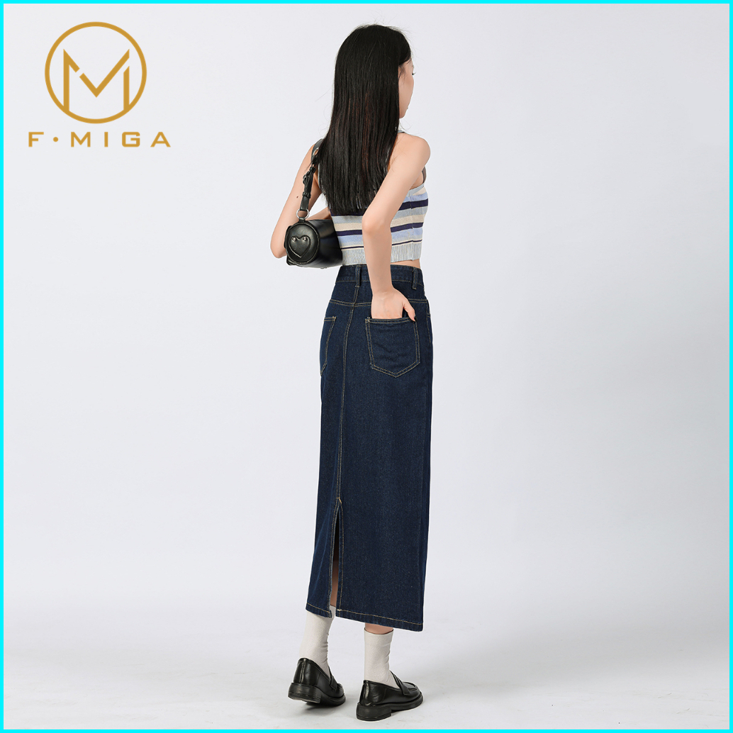 F.miga C54 High Waist Denim Rok Jeans Wanita - Dark Blue