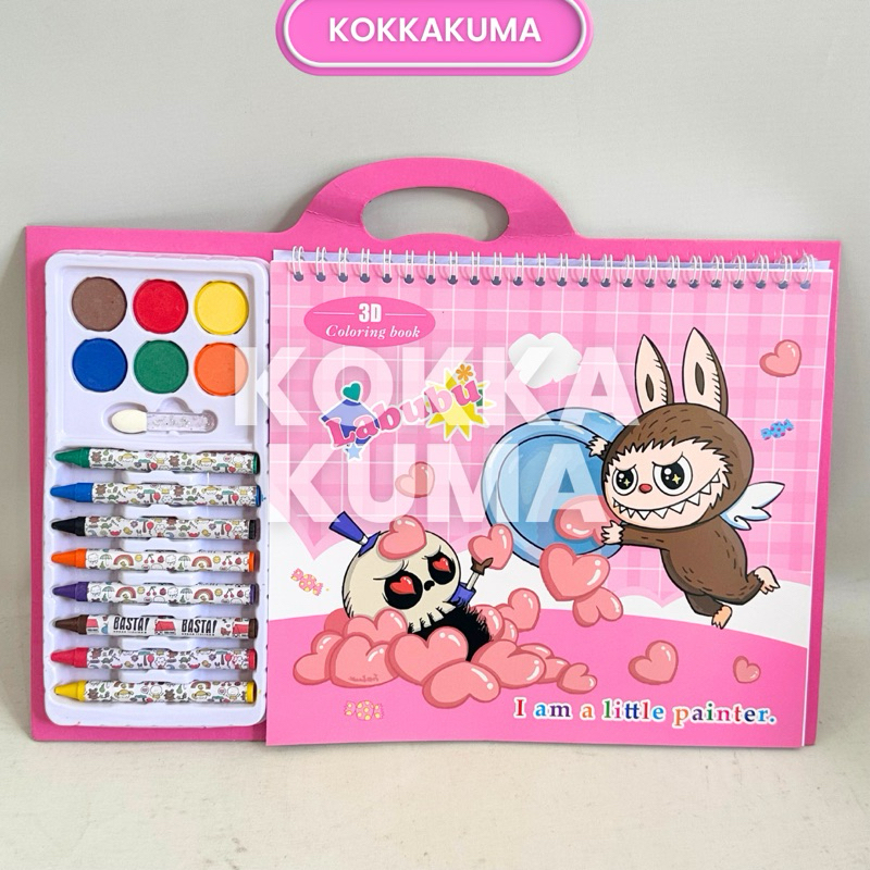 ( KKM ) LABUBU Set Mewarnai / Paket Coloring Book Set Buku mewarnai Aktifitas Warna Anak Balita Lucu isi 12 Lembar lengk